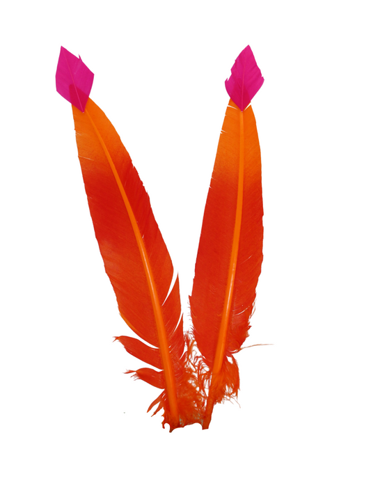 Ostrich Wings Plumes 2 Tone Orange with Red Tip