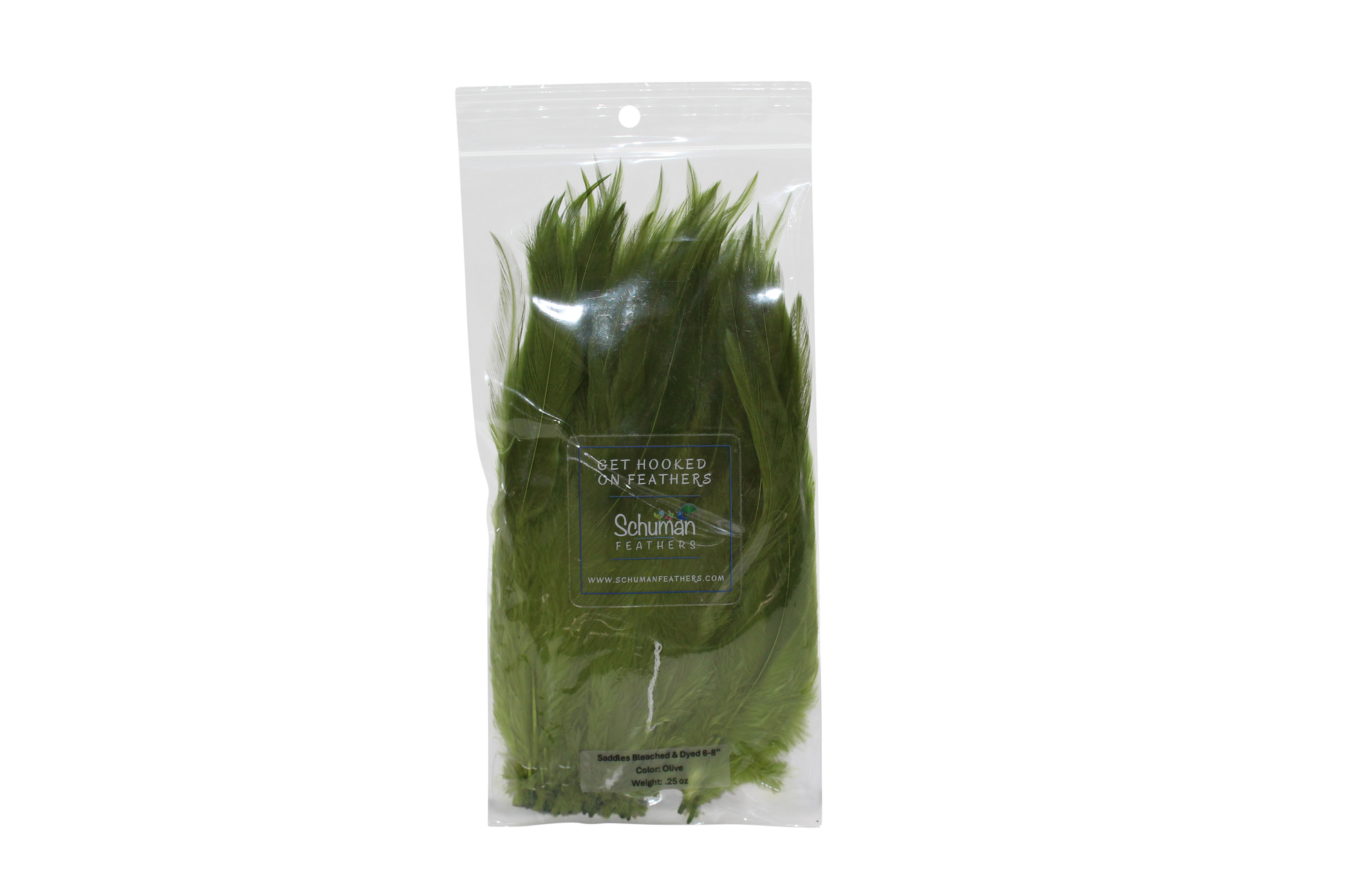 6-7" Rooster Saddles Bleached & Dyed H1 Olive