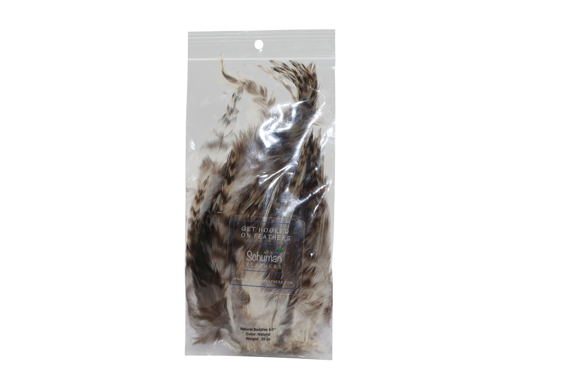 Our 6–7" Rooster Saddles in Natural are a timeless choice for fly tying and lure making. These long, flexible feathers flow naturally in the water, giving your flies lifelike action. The natural shade is versatile and essential for classic and traditional fishing patterns. Packed in convenient portions, they provide plenty of material for tying multiple flies.