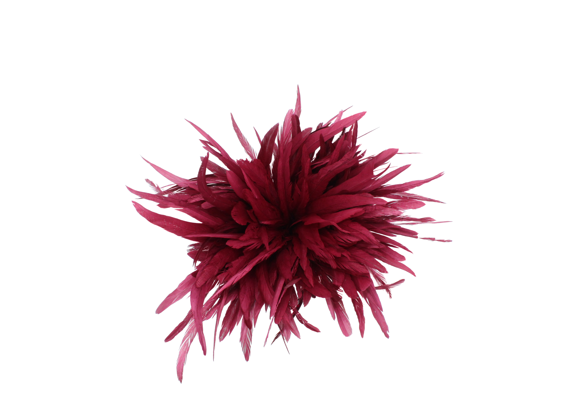 The vibrant Cranberry (H57) feathers provide a bold pop of color that enhances any design. Measuring 12" and strung in a convenient 1-yard length, these feathers are perfect for adding warmth and cheer. This rich hue is ideal for festive occasions and winter arrangements.