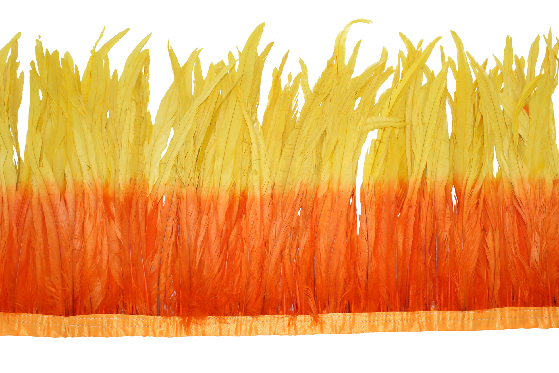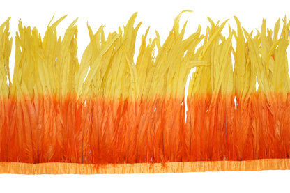 Bright and sunny, these 12" cocktail feathers feature a vibrant Yellow (H36) on top that blends seamlessly into a lively Orange (H62) below. Strung in 1-yard lengths, they add a cheerful burst of color to any project. This warm combination is perfect for summer festivities and tropical-inspired designs.