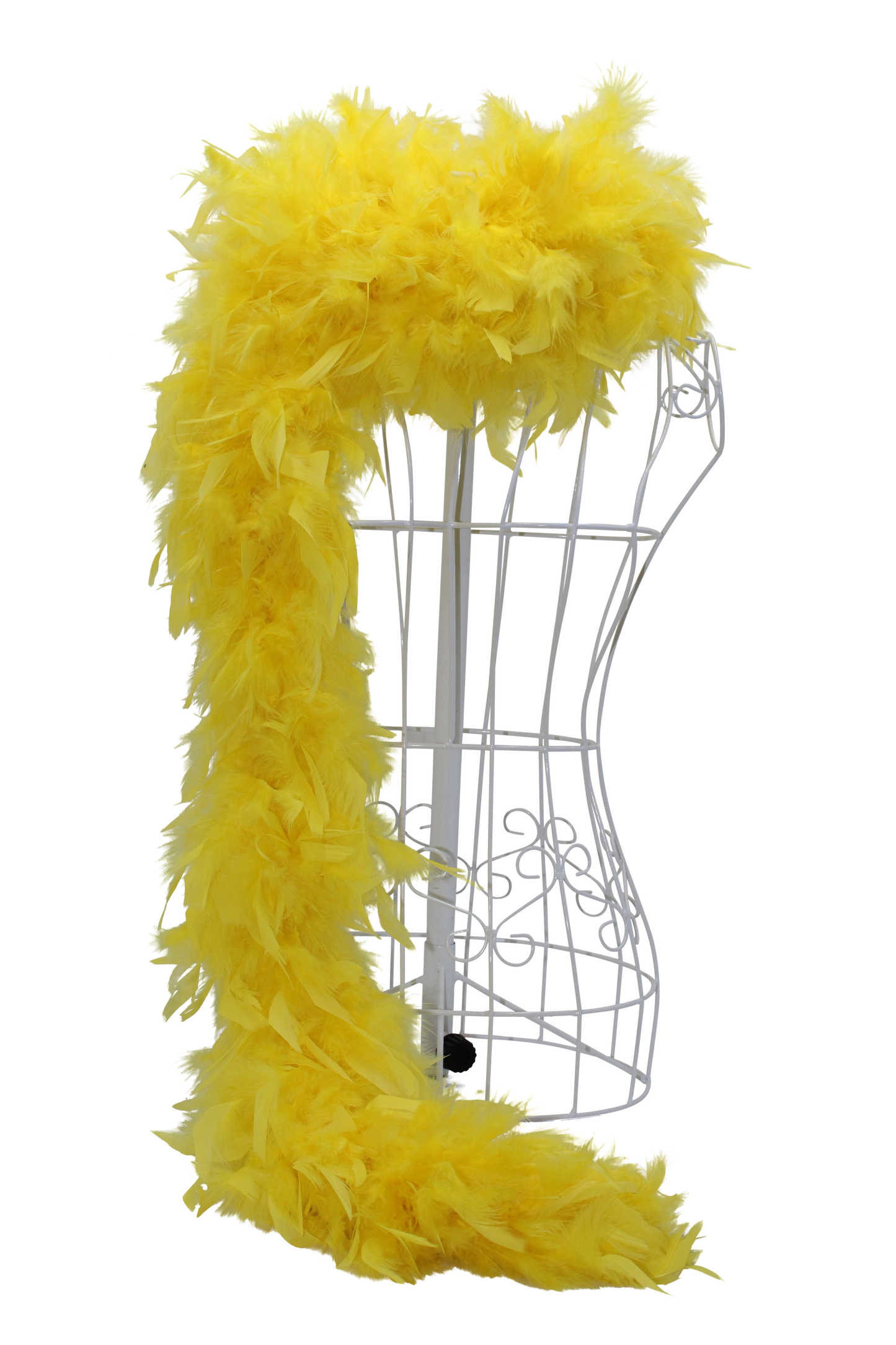 Radiant and energetic, the Feather Boa Chandelle H36 Yellow brings warmth and vibrancy to bold designs, festive occasions, and colorful crafts.