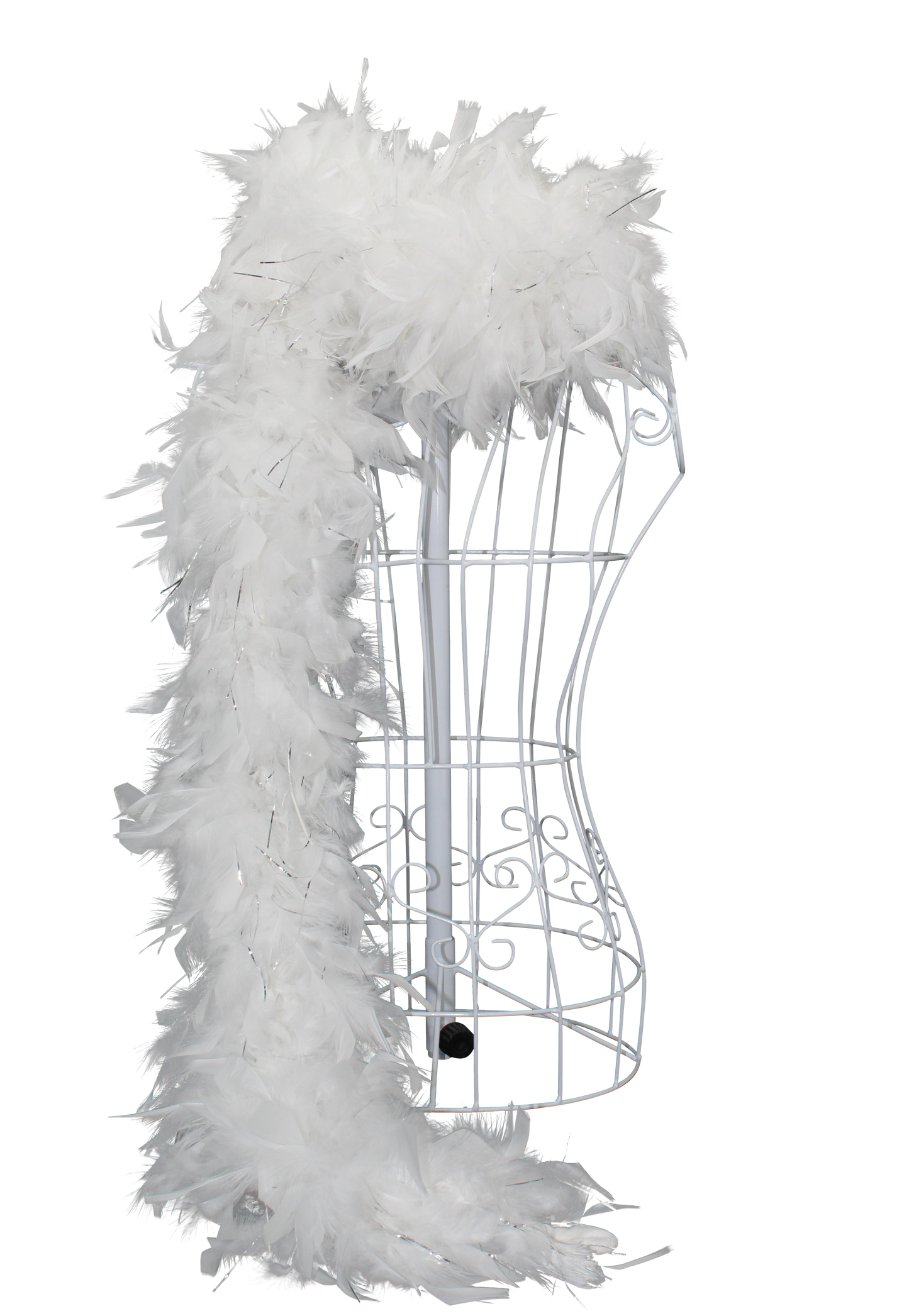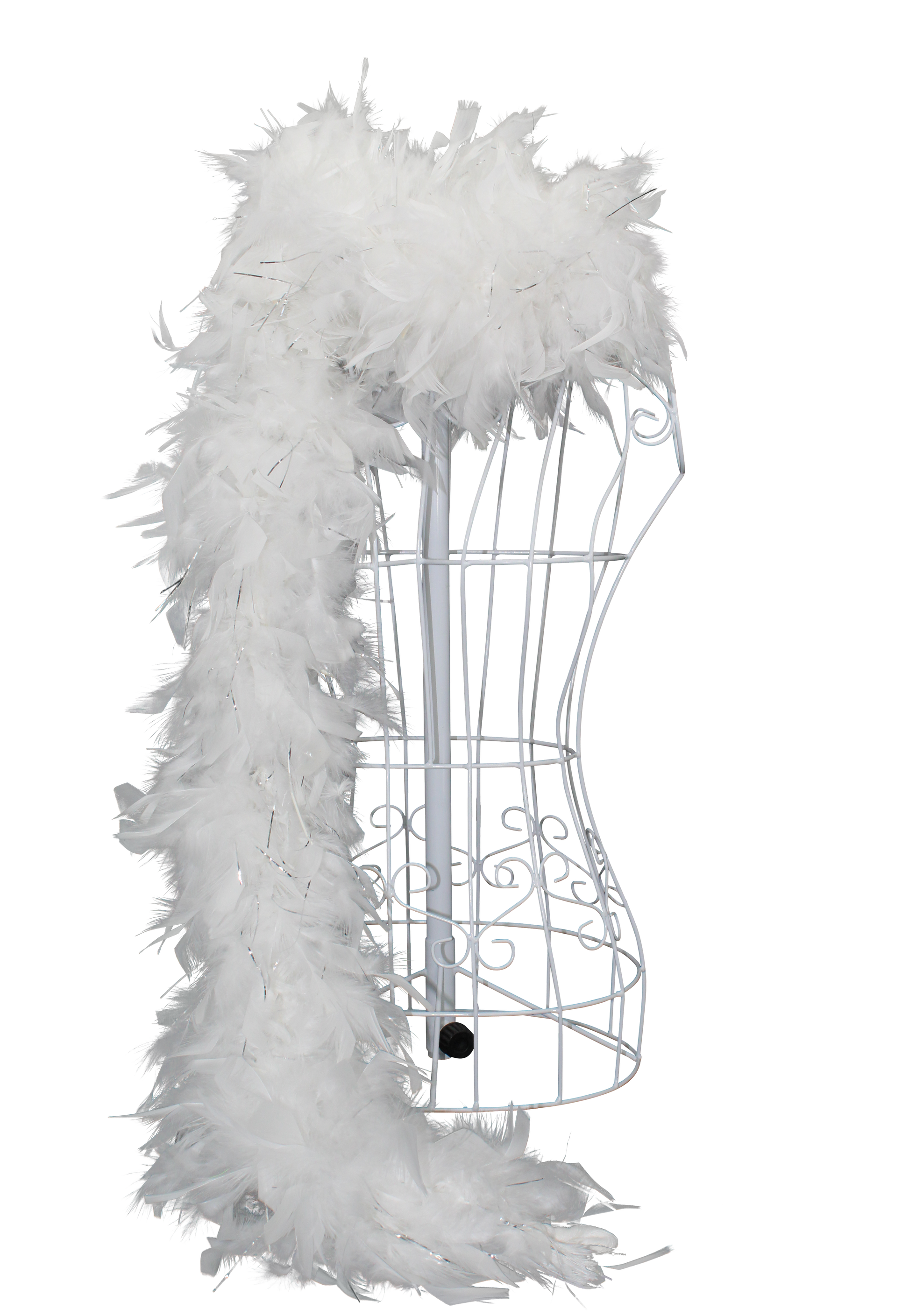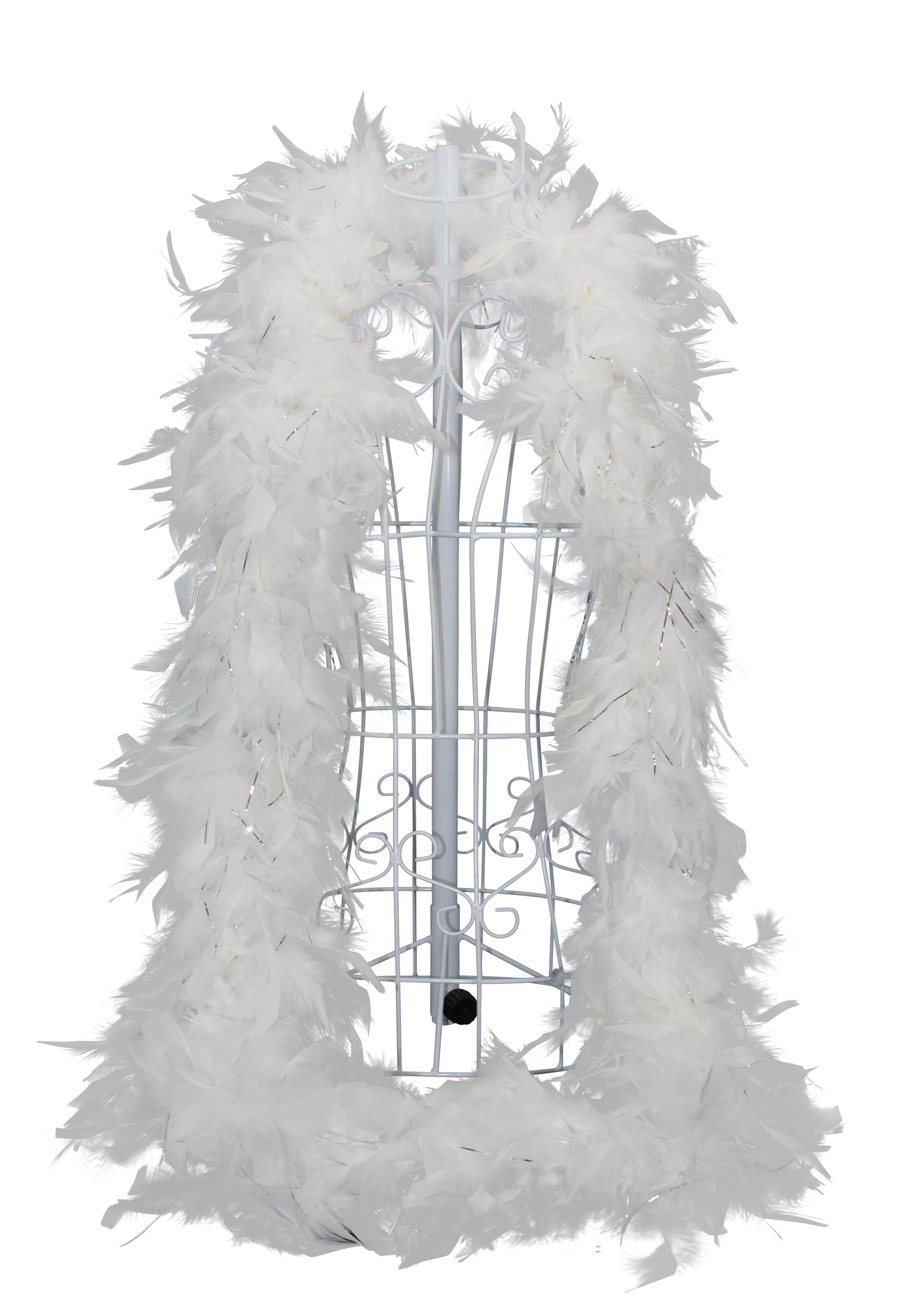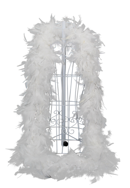 Classic and luminous, the Feather Boa Chandelle with Silver Lurex H81 White features pristine white feathers with silver sparkle, ideal for weddings, winter themes, and sophisticated décor.