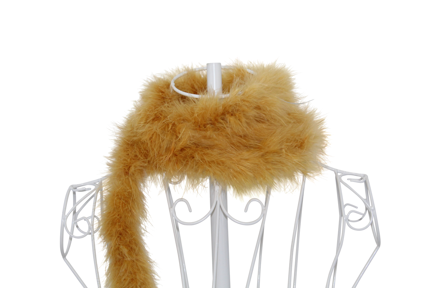 Indulge in timeless style with our Antique Gold (H105) Marabou Feather Boa. This warm, luxurious shade adds a vintage touch to decor, fashion, and special occasions, enhancing any setting with 2 yards of golden elegance.