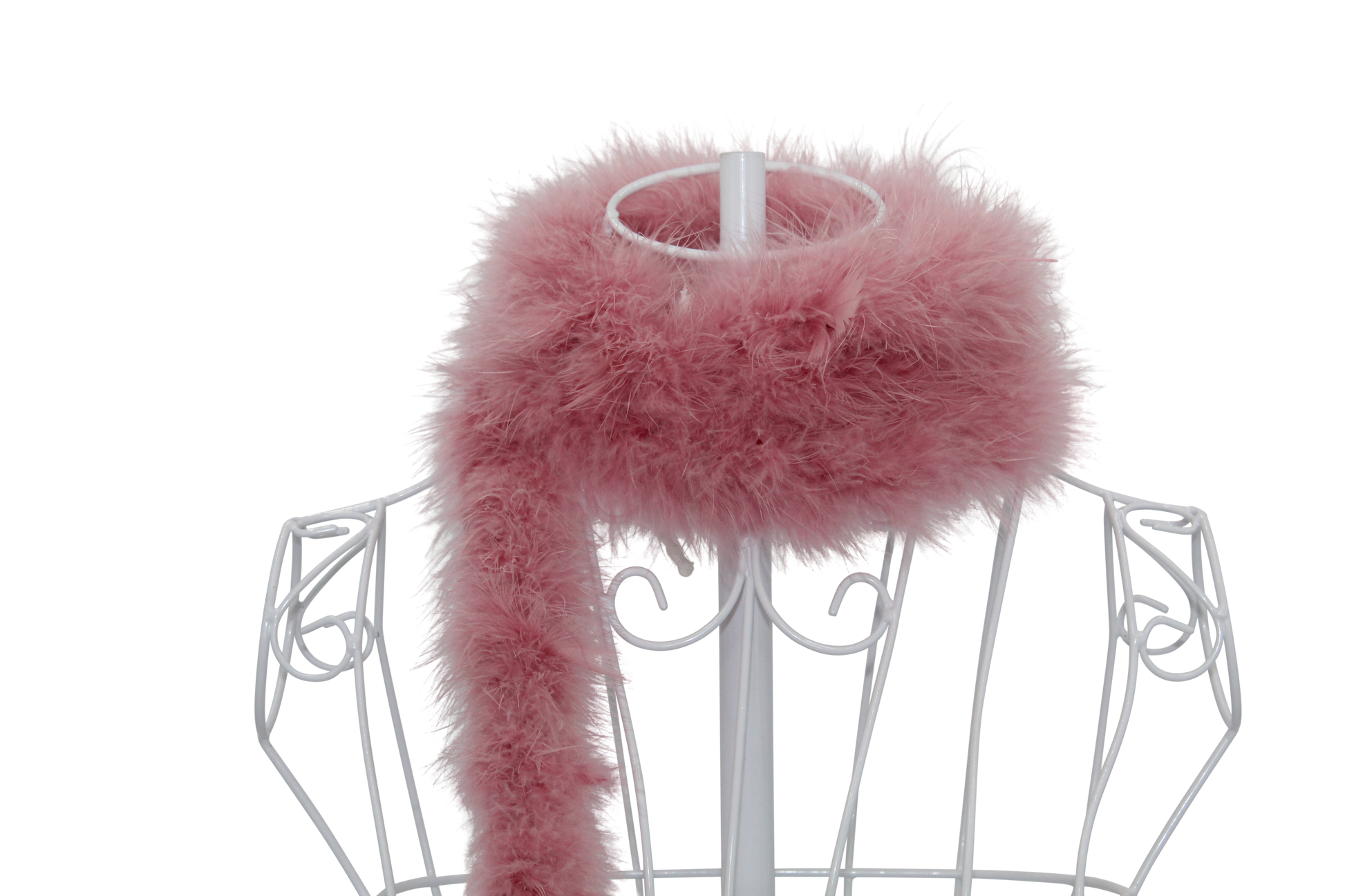 Soft and romantic, this Dusty Rose Marabou Boa (H85) brings vintage charm to any setting. Its gentle pink hue is ideal for weddings and feminine designs. Perfect for creating an atmosphere of timeless elegance.