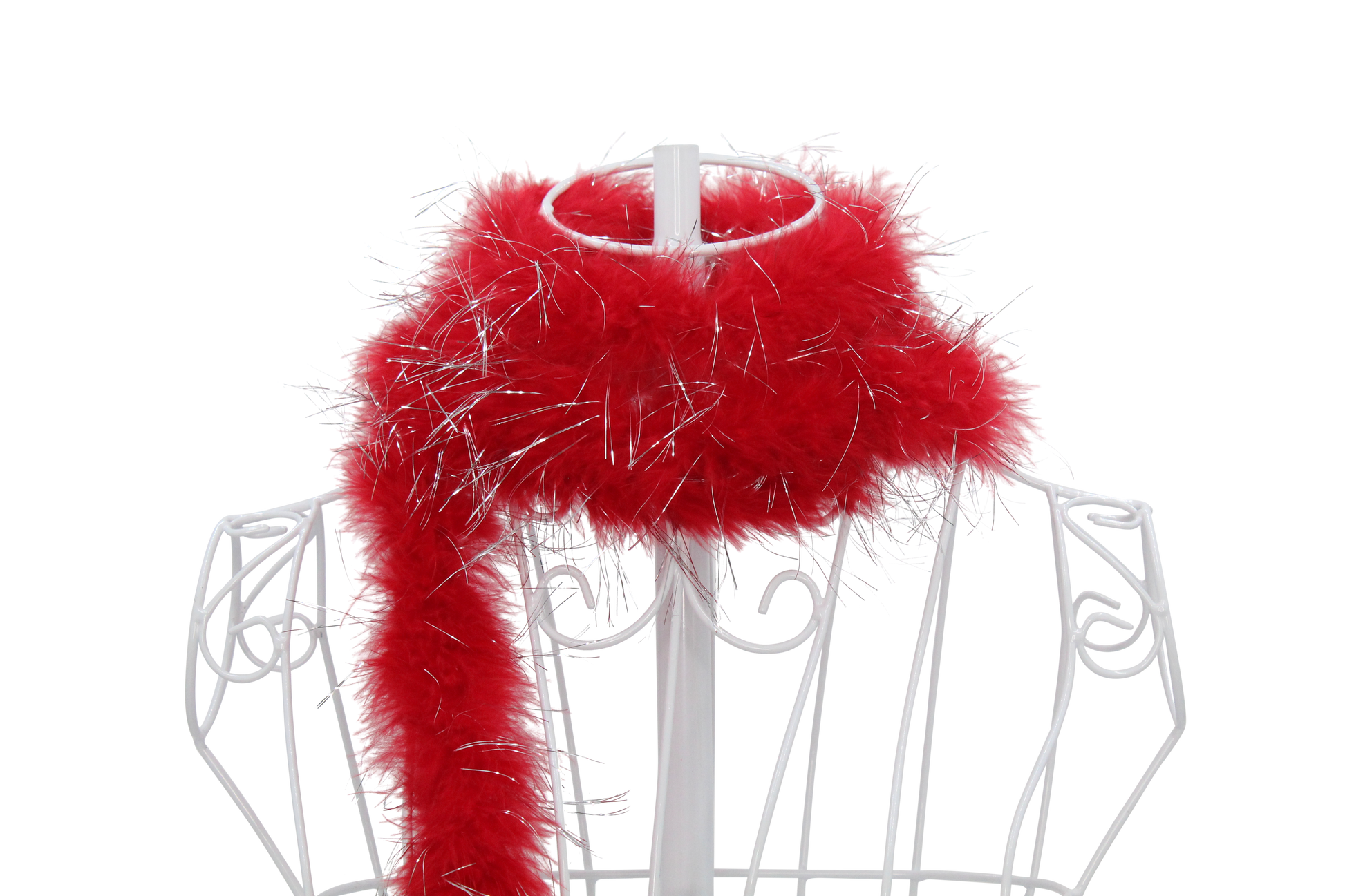 Bold and radiant, the Feather Boa Marabou with Silver Lurex H72 Red combines vibrant crimson feathers with shimmering silver accents. Perfect for festive events, eye-catching costumes, and glamorous décor, this 2-yard boa brings passion and sparkle to your creative projects.