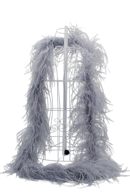 Sleek and modern, the Feather Boa Ostrich H45 Silver adds a shimmering sophistication, ideal for chic décor, fashion accents, and contemporary crafts.