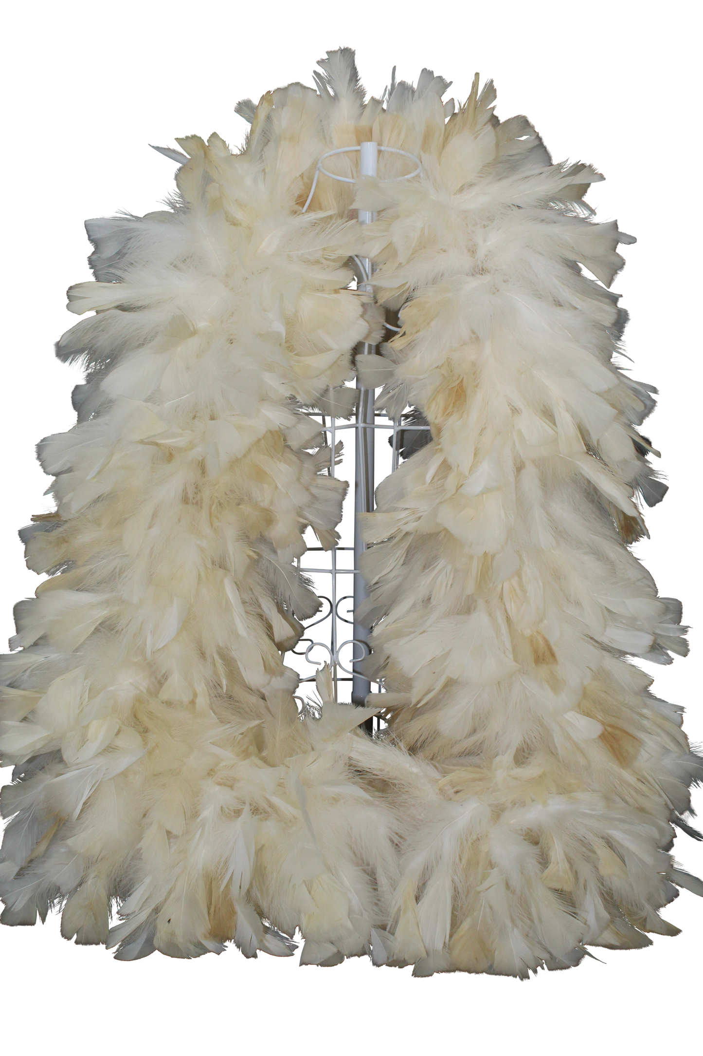 Soft and elegant, this Ivory Turkey Ruff Feather Boa (H33) features feathers measuring 5 inches or longer for a delicate touch. Spanning 2 yards in length, its super fat design is ideal for weddings, formal events, or sophisticated decor. Use this lovely boa to enhance any outfit with a touch of refined charm.