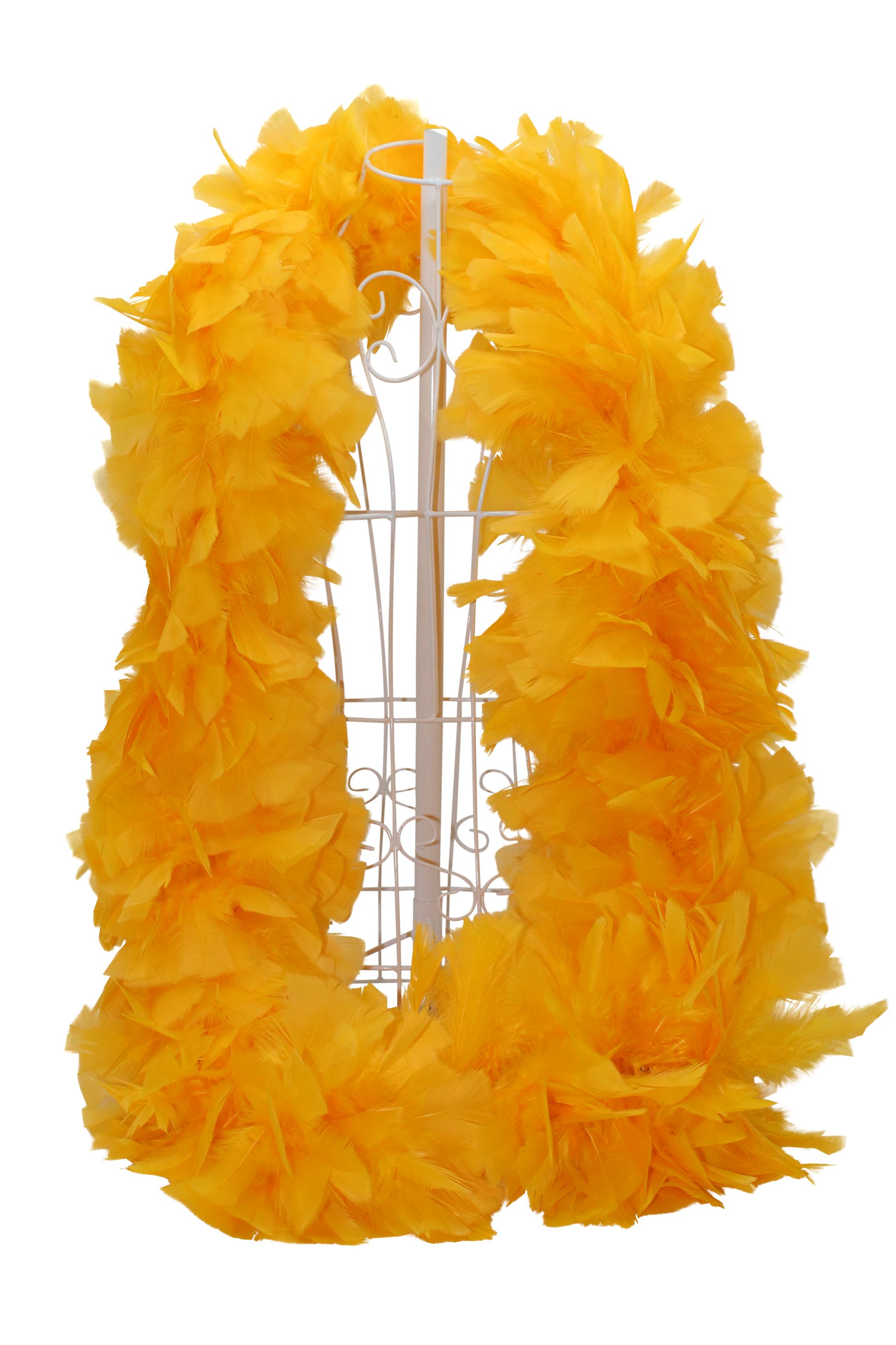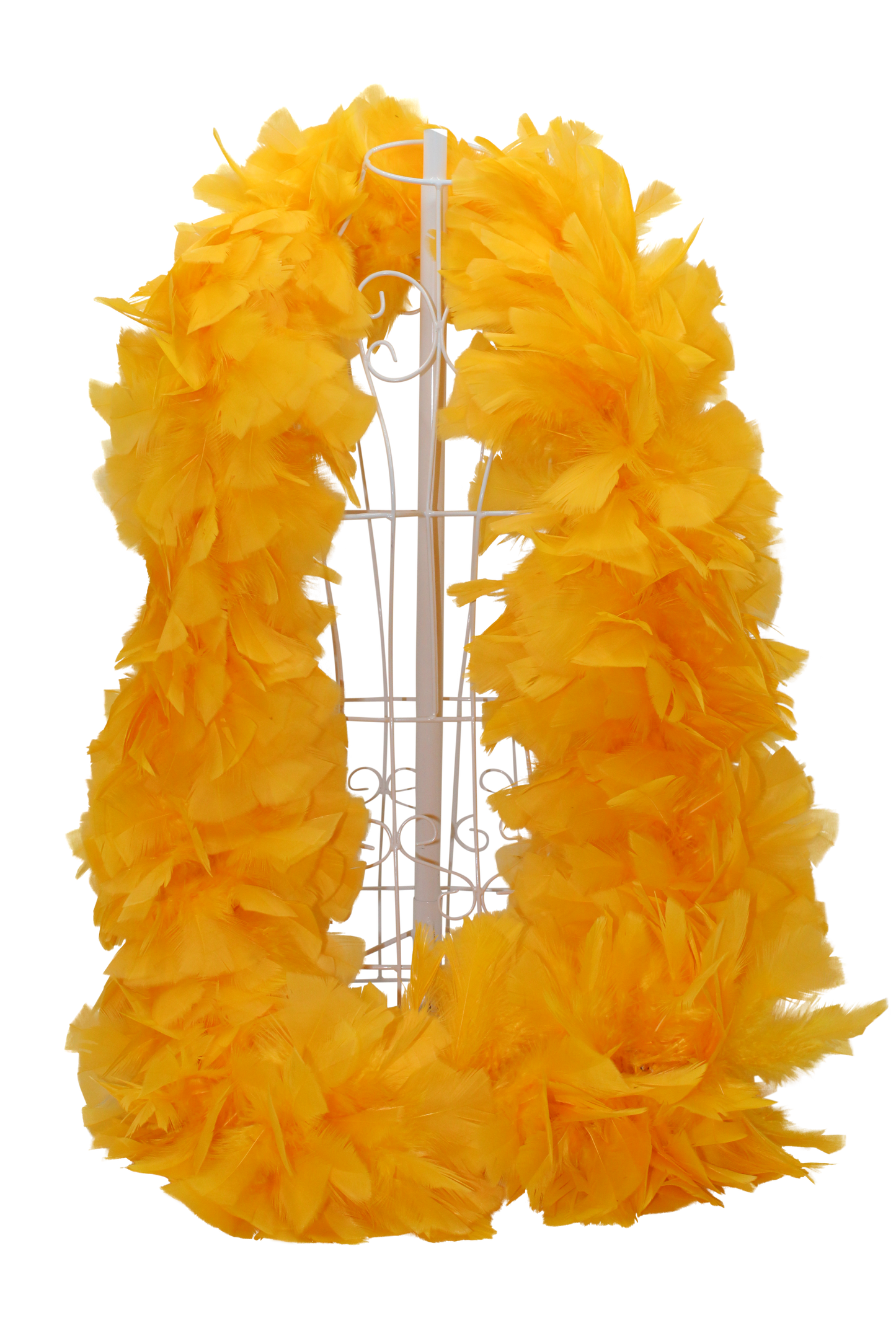Dazzling and luxurious, this Gold Turkey Ruff Feather Boa (H38) showcases plush feathers that extend 5 inches or longer. Measuring 2 yards long, its super fat design adds a glamorous shine, making it ideal for upscale events, parties, or costume enhancements. Use this radiant boa to add a touch of opulence to any occasion.