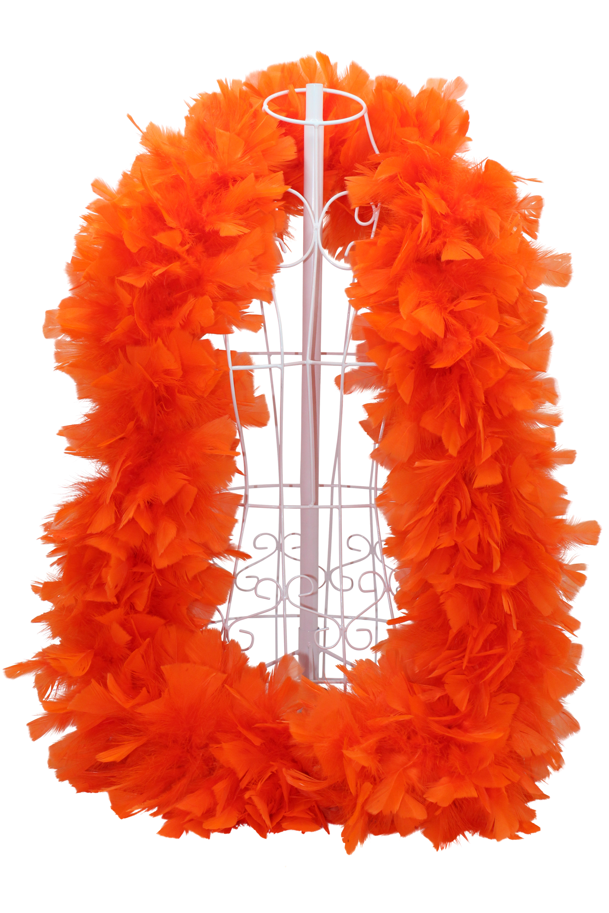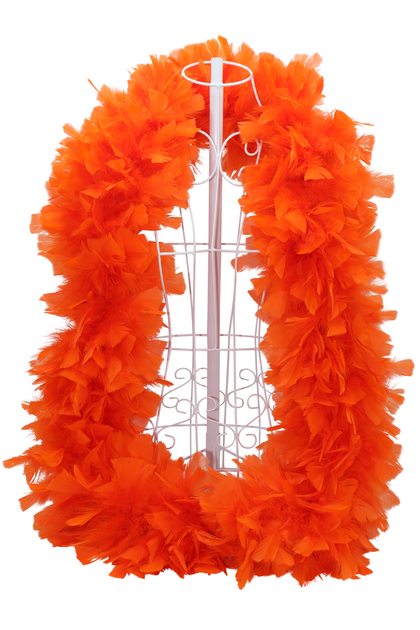 Bright and lively, this Orange Turkey Ruff Feather Boa (H62) features vibrant feathers measuring 5 inches or longer. Measuring 2 yards long, its super fat design adds a fun and energetic vibe, ideal for Halloween or festive celebrations. This boa is perfect for adding a cheerful burst of color to any costume or decor.