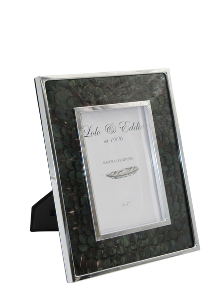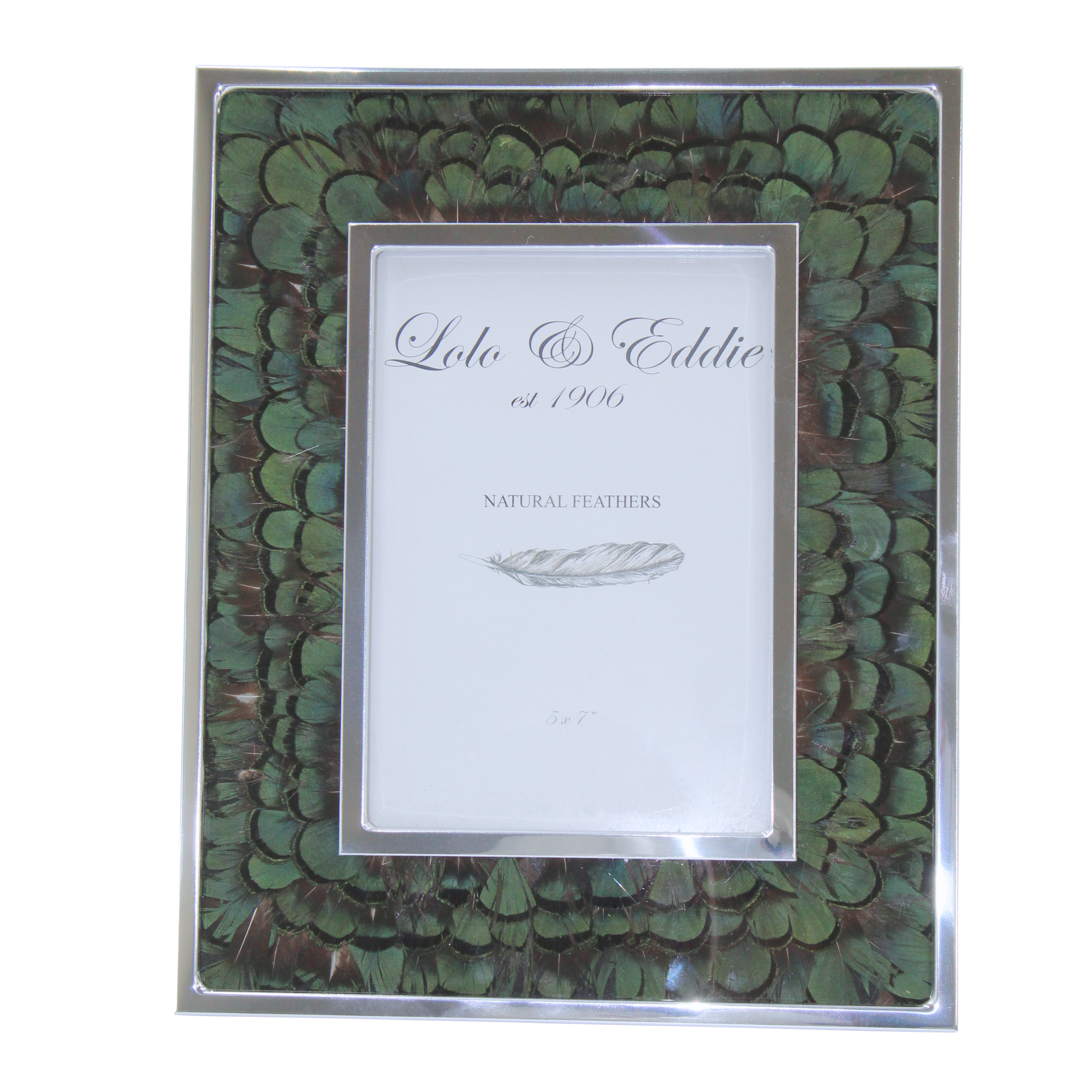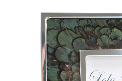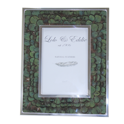Feather Frames Green Pheasant The Deja FF4 feature vibrant green pheasant feathers arranged in a stylish frame. Perfect for gifts, this natural pheasant adds a touch of nature and elegance to any space. Ideal for creating unique, sophisticated home decor.