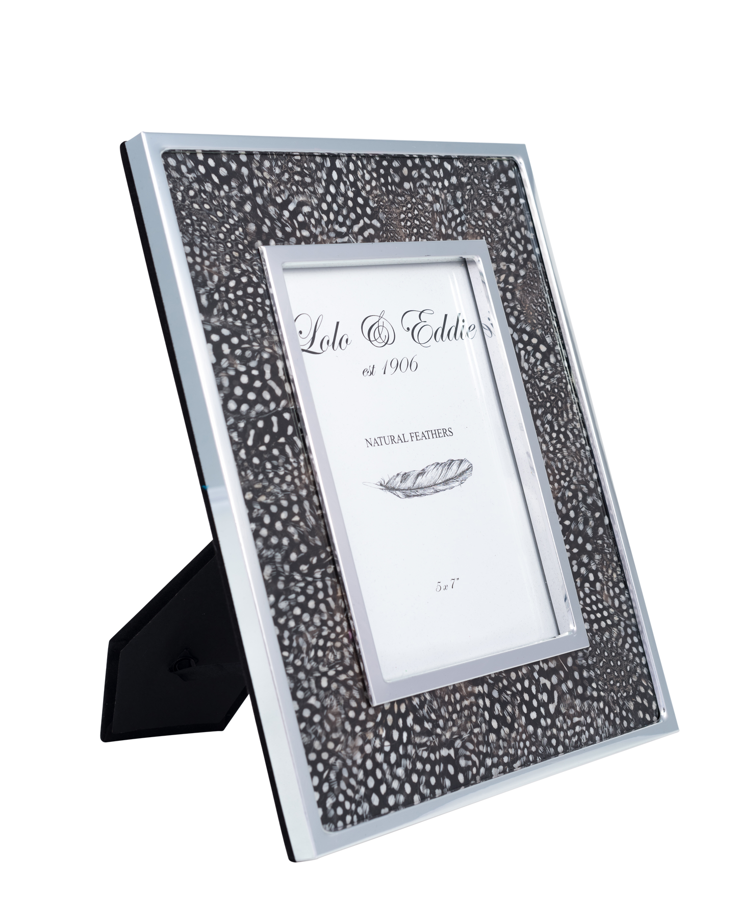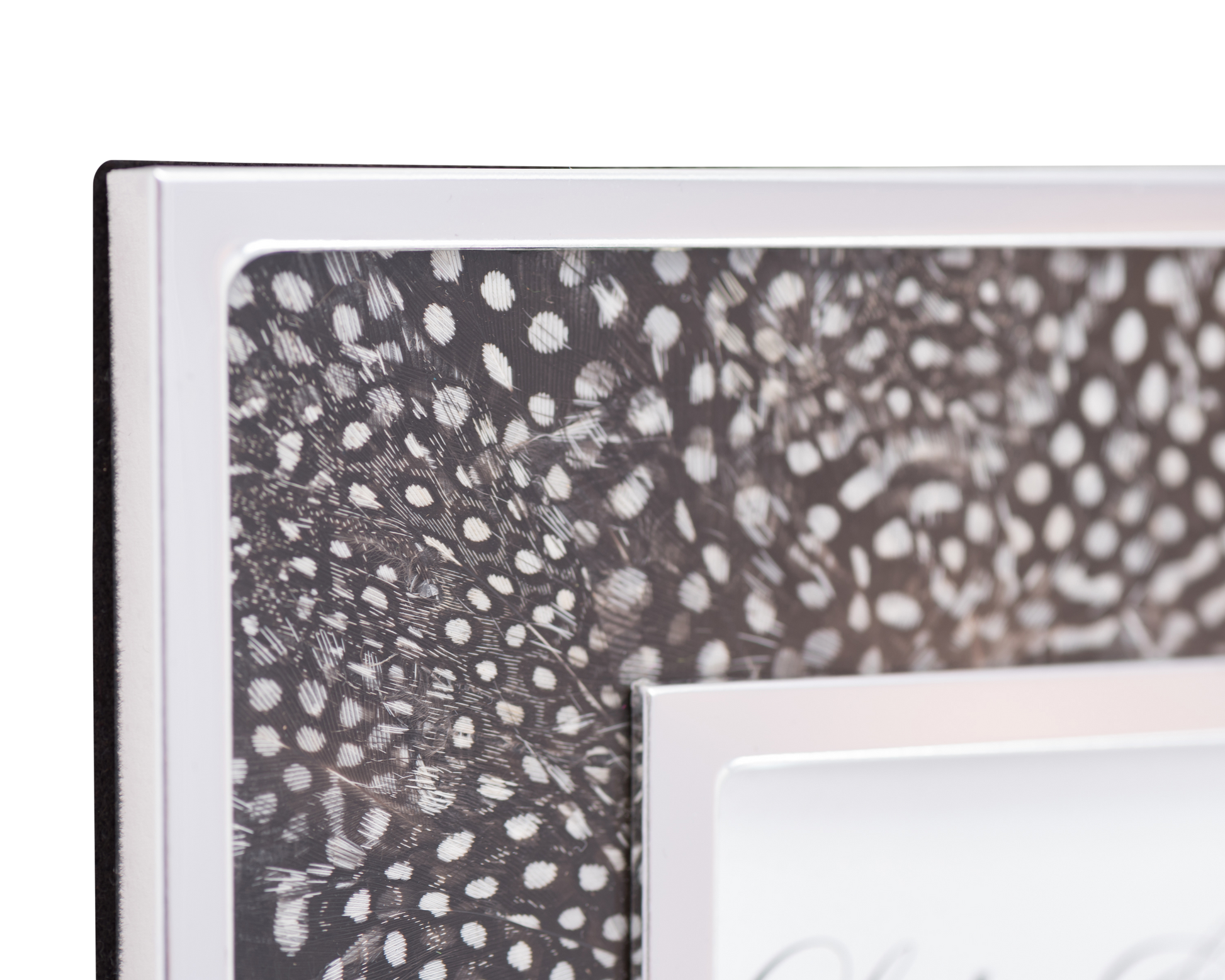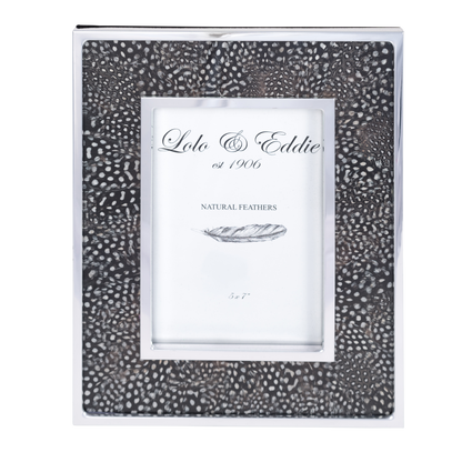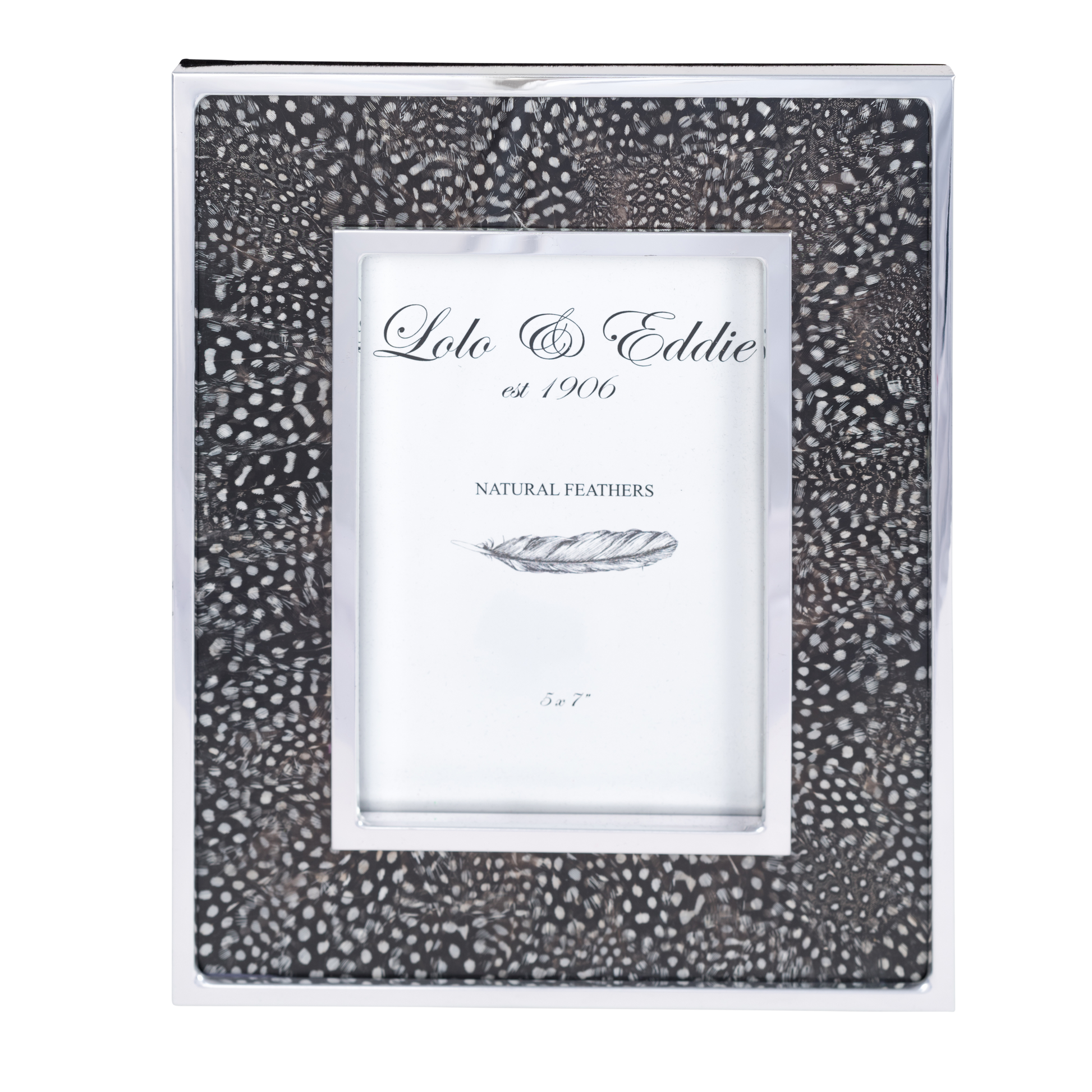 Feather Frames Guinea Fowl The Ivy FF2 feature striking guinea fowl feathers arranged in a unique frame design. Perfect for gifts, this natural guinea fowl adds texture and elegance to any space. Ideal for creating bold, sophisticated home decor.