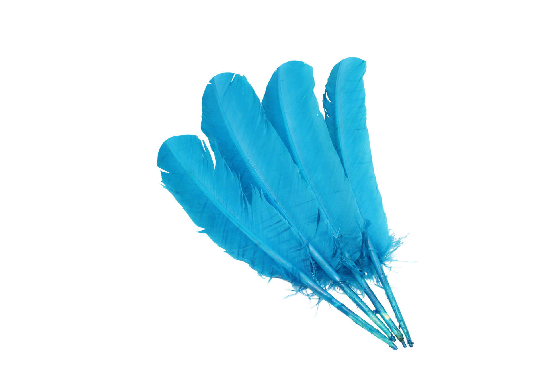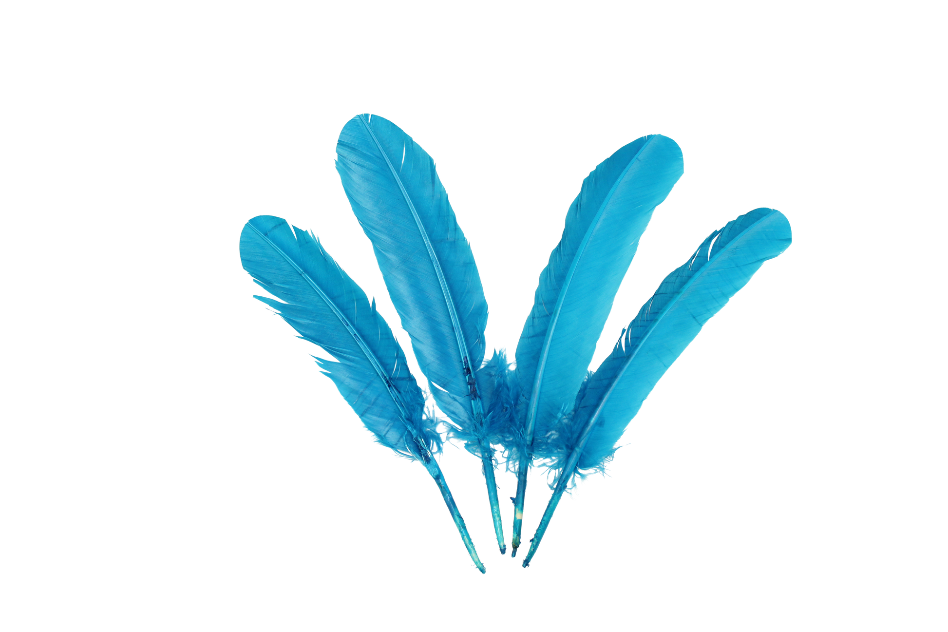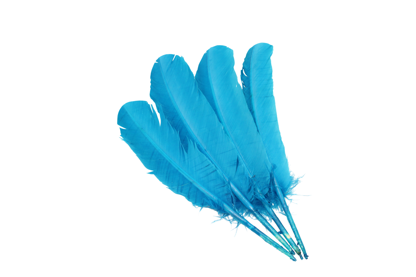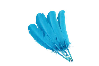 Turquoise quills perfect for hats, costumes, and crafts. Sleek and lightweight for elegant designs. Includes 4 right-facing quills per pack.