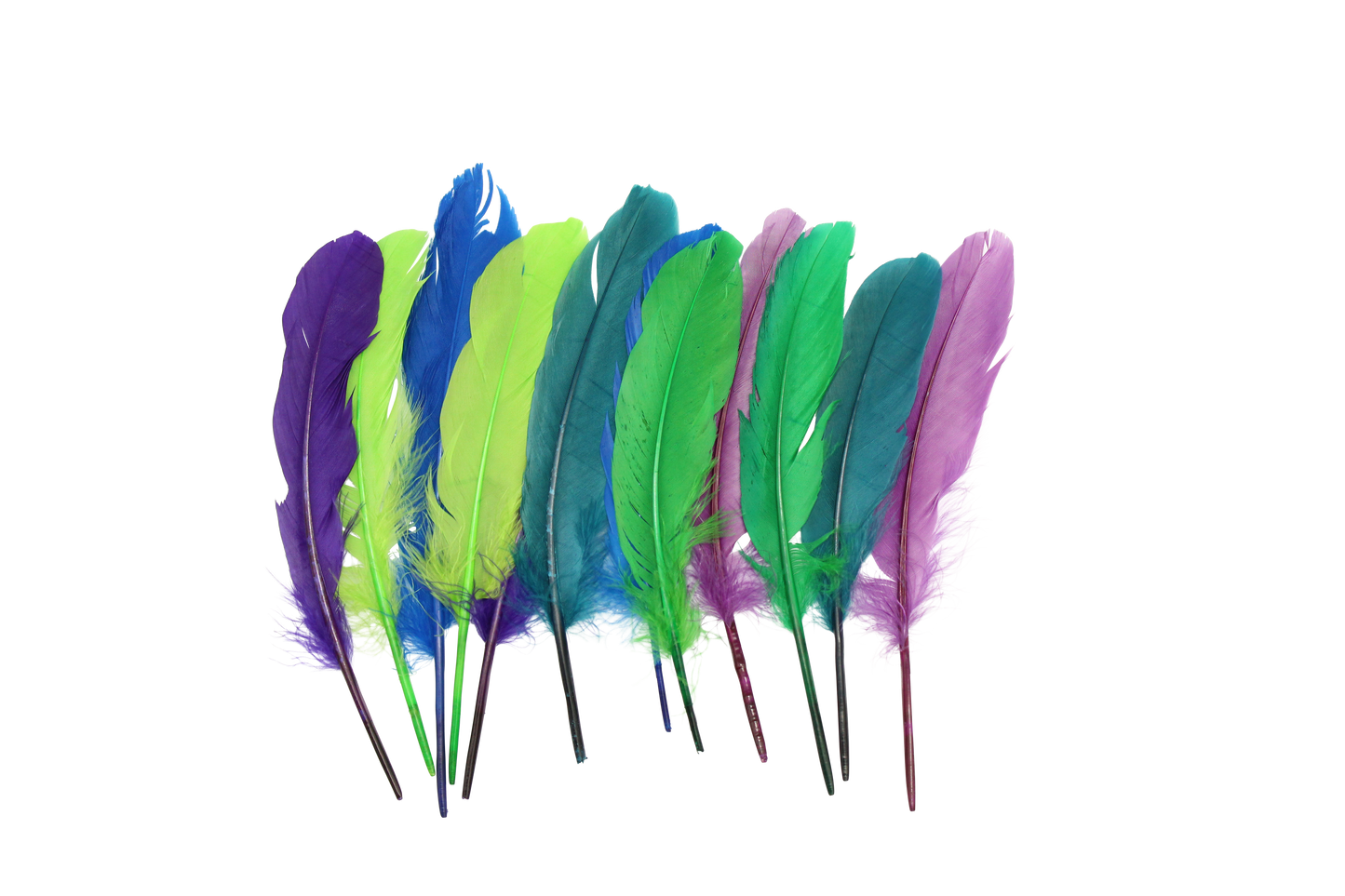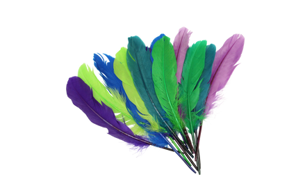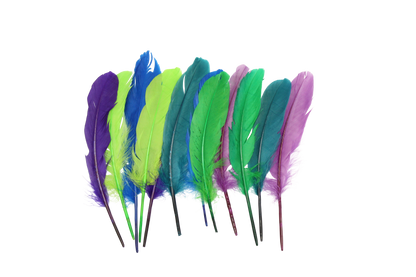 Short quills in an assorted cool mix of colors, perfect for adding a fresh touch to hats, costumes, and crafts. Lightweight and versatile for creative designs. Includes 12 pieces per pack.