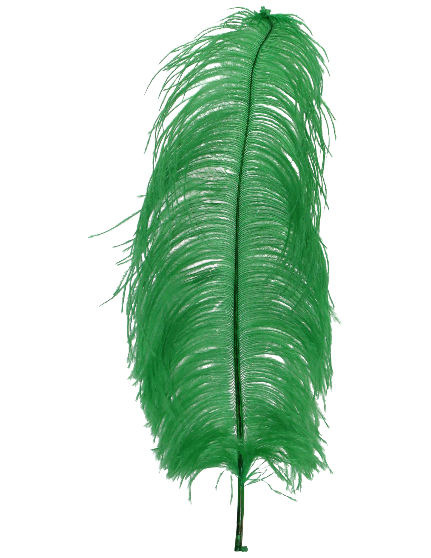 Our Ostrich Drabs in Kelly Green (H10), measuring 13-17 inches, are a stunning choice for adding vivid color to your creations. Whether for costumes, floral arrangements, or décor, these feathers bring a lively elegance to any project.
