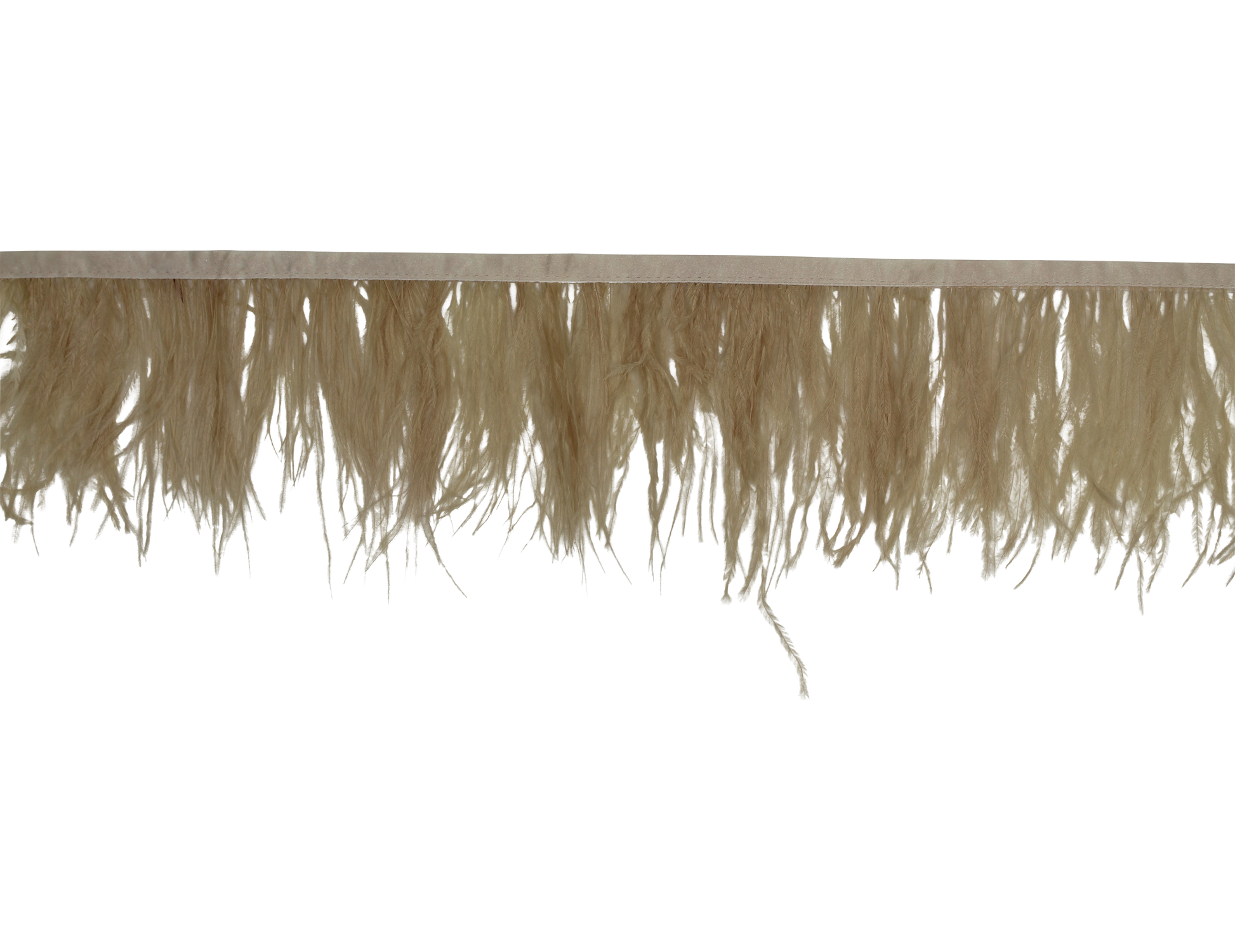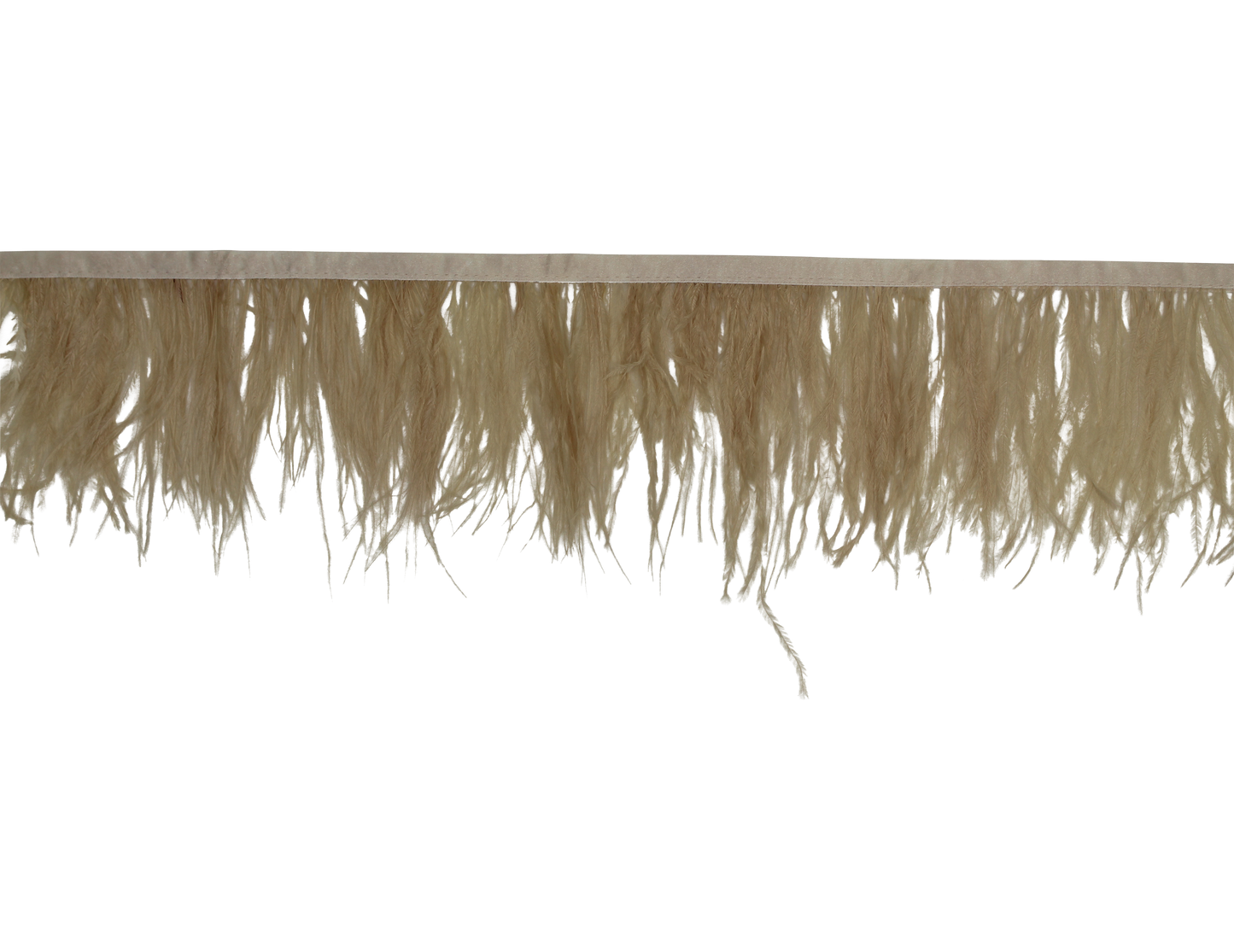 The Beige (H39) Ostrich Fringe 5-7" offers a soft, neutral tone that complements any project. Subtle and versatile, this hue adds a touch of elegance to fashion, home décor, and crafts.