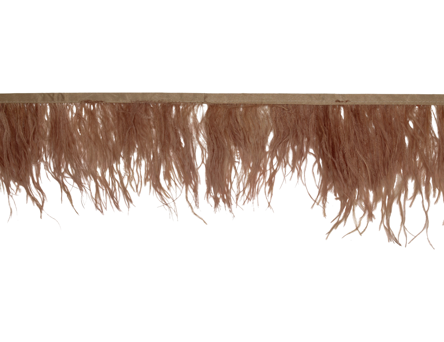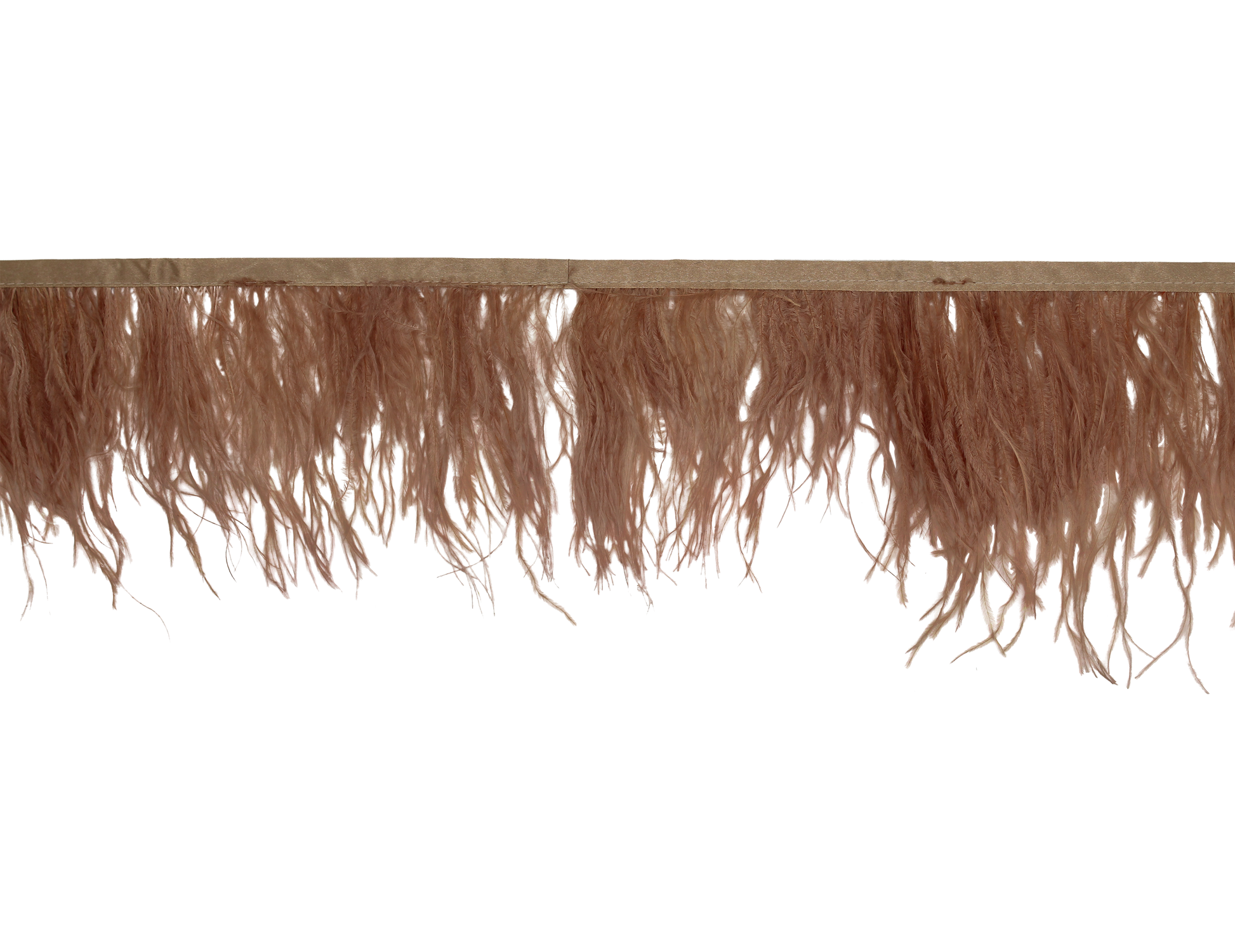 Tan (H41) Ostrich Fringe 5-7" offers a warm, muted tone reminiscent of soft desert landscapes. Ideal for creating natural, earthy vibes in fashion pieces, décor, or crafts with a sophisticated, understated feel.