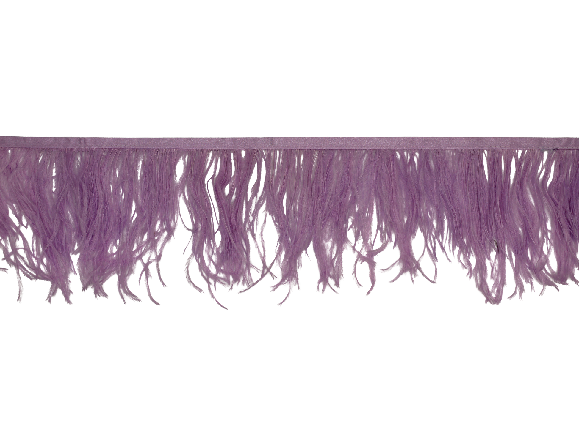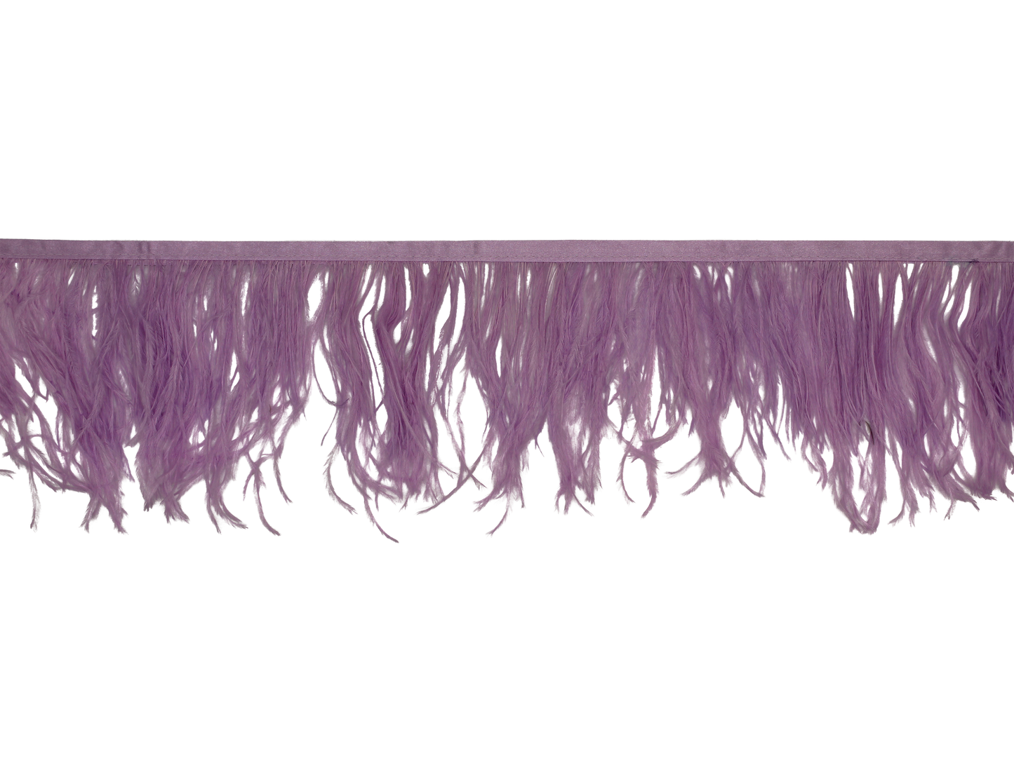 The Lilac Cloud (H73) Ostrich Fringe 5-7" offers a soft, light purple with gentle pink undertones. This color creates a dreamy, ethereal feel and is perfect for adding a subtle yet enchanting touch to fashion, crafts, or décor.
