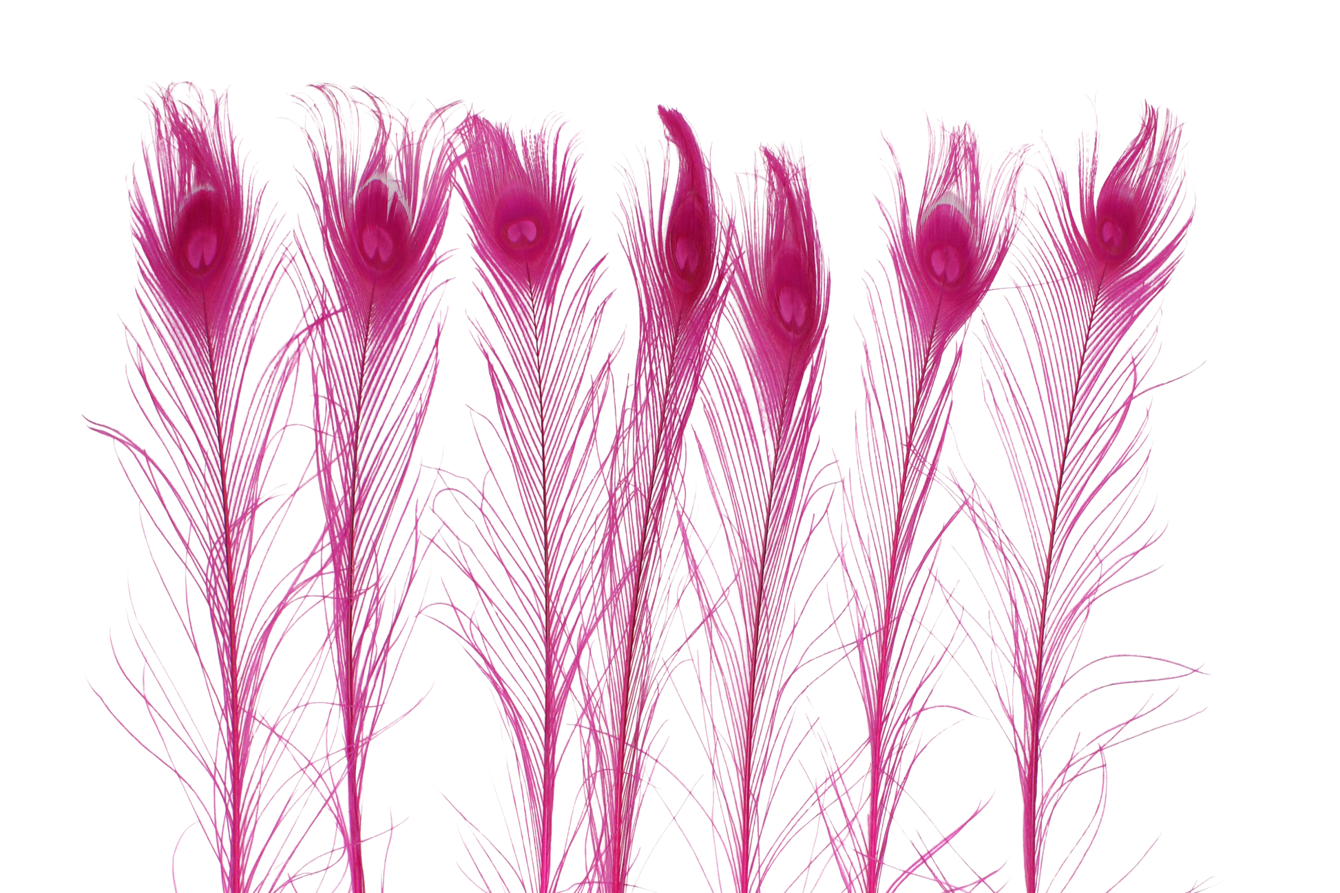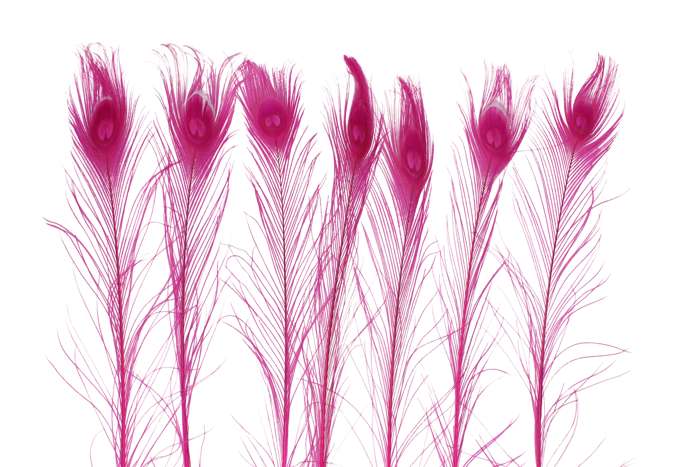 Vibrant and bold, these 25-inch and up bleached and dyed peacock feathers in Hot Pink (H69) feature a lively, saturated hot pink stem, with the eye perfectly matching the same energetic hue. The bleached and dyed process creates a striking, cohesive color effect, ideal for statement décor, bold costume designs, or vibrant crafts.