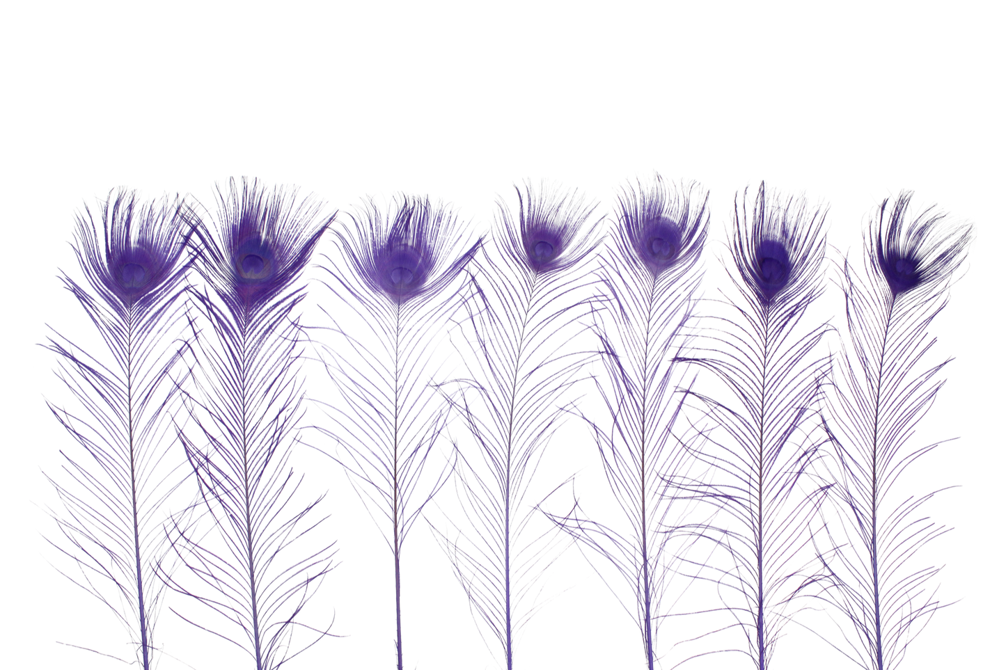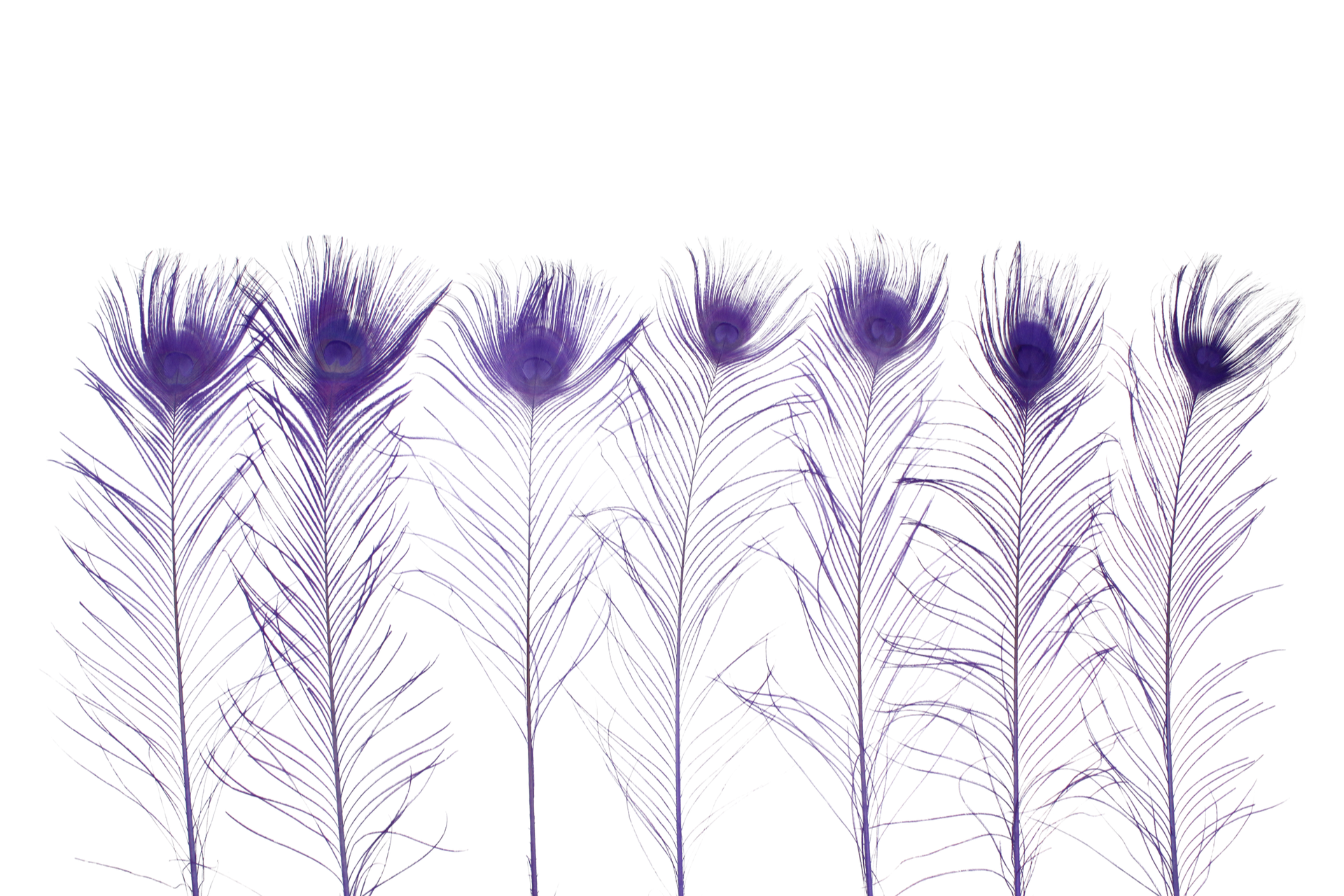 These 25-inch and up bleached and dyed peacock feathers in Purple (H76) feature a rich violet stem, with the eye beautifully matching the deep purple hue. The bleached and dyed process creates a cohesive, elegant look, making these feathers perfect for sophisticated event décor, unique fashion accents, or luxurious crafts.