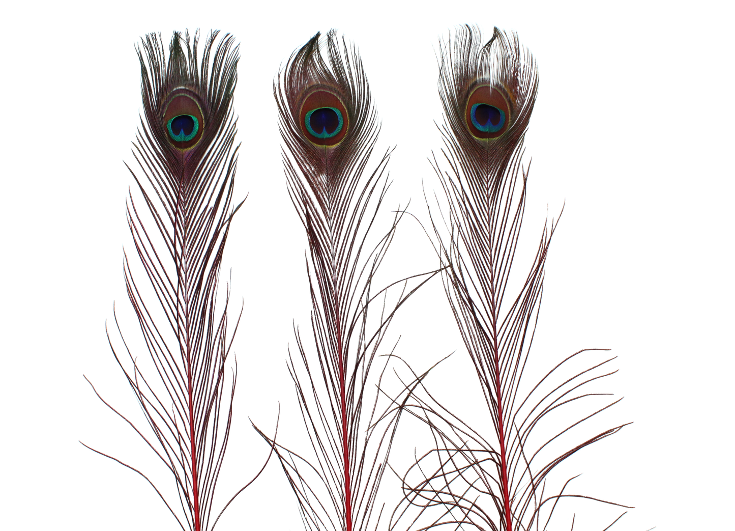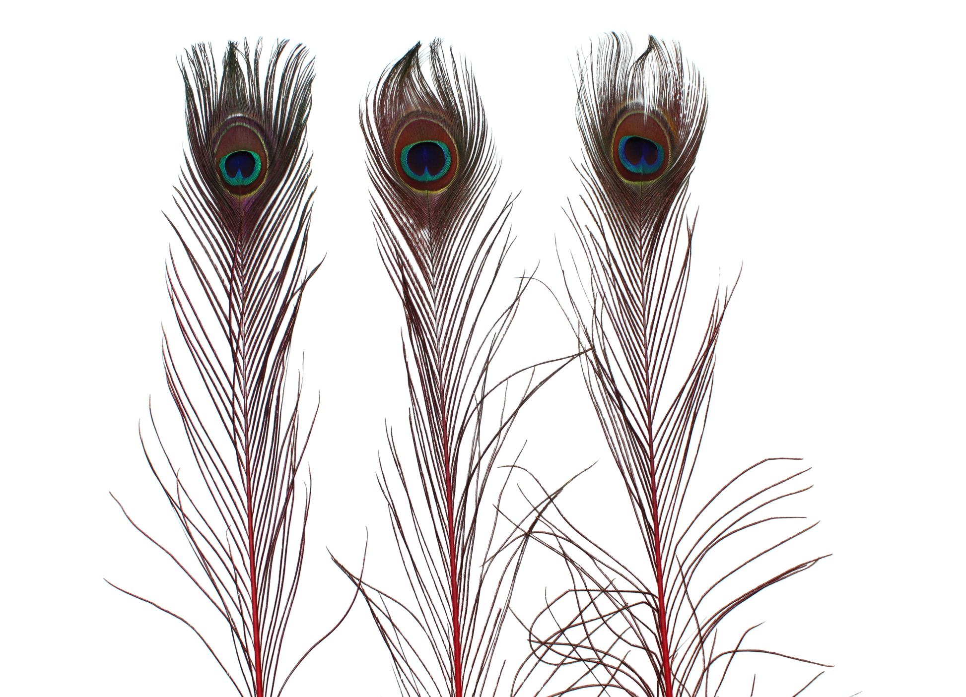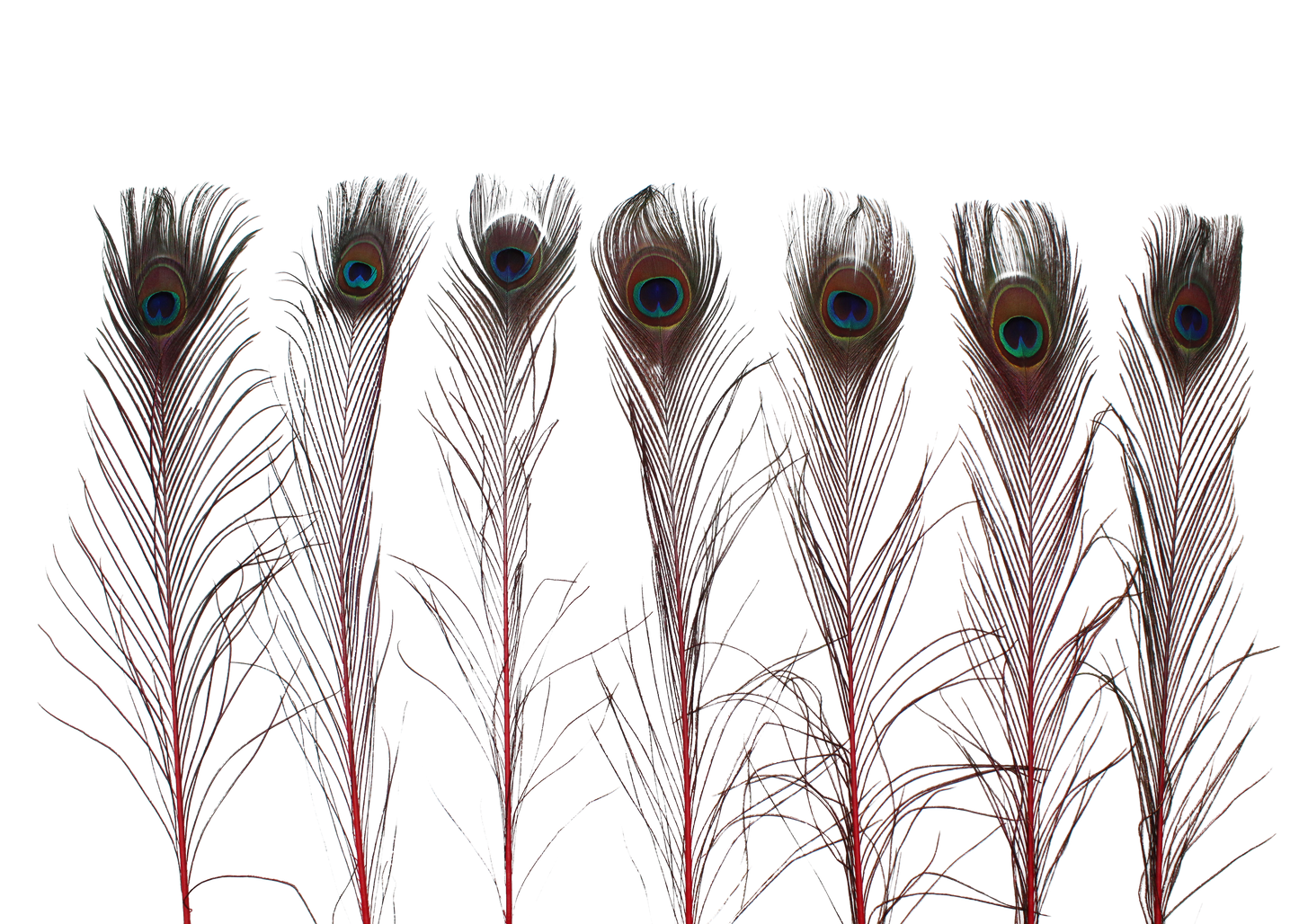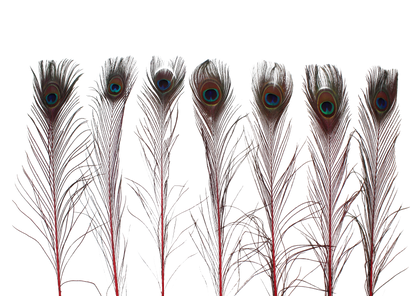 These 25-inch and up stem dyed peacock feathers in Red (H72) feature a dramatic red stem, bringing passion and intensity to any display. The eye maintains its natural colors beneath the red dye, creating a stunning contrast between bold red and shimmering peacock hues. Perfect for weddings, holiday décor, or bold craft projects, these feathers make a powerful statement.