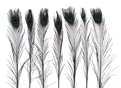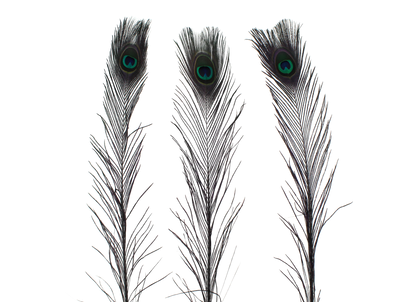 These 25-inch and up stem dyed peacock feathers in Black (H80) feature a sleek, black stem that adds a dramatic and modern edge. The eye retains its natural iridescent hues beneath the black dye, resulting in a beautiful contrast between deep, dark tones and vibrant peacock colors. Perfect for weddings, gothic-themed décor, upscale events, or bold crafts, these feathers bring a striking, sophisticated look to any setting.