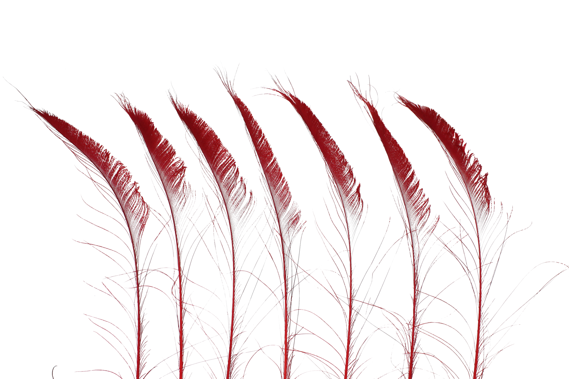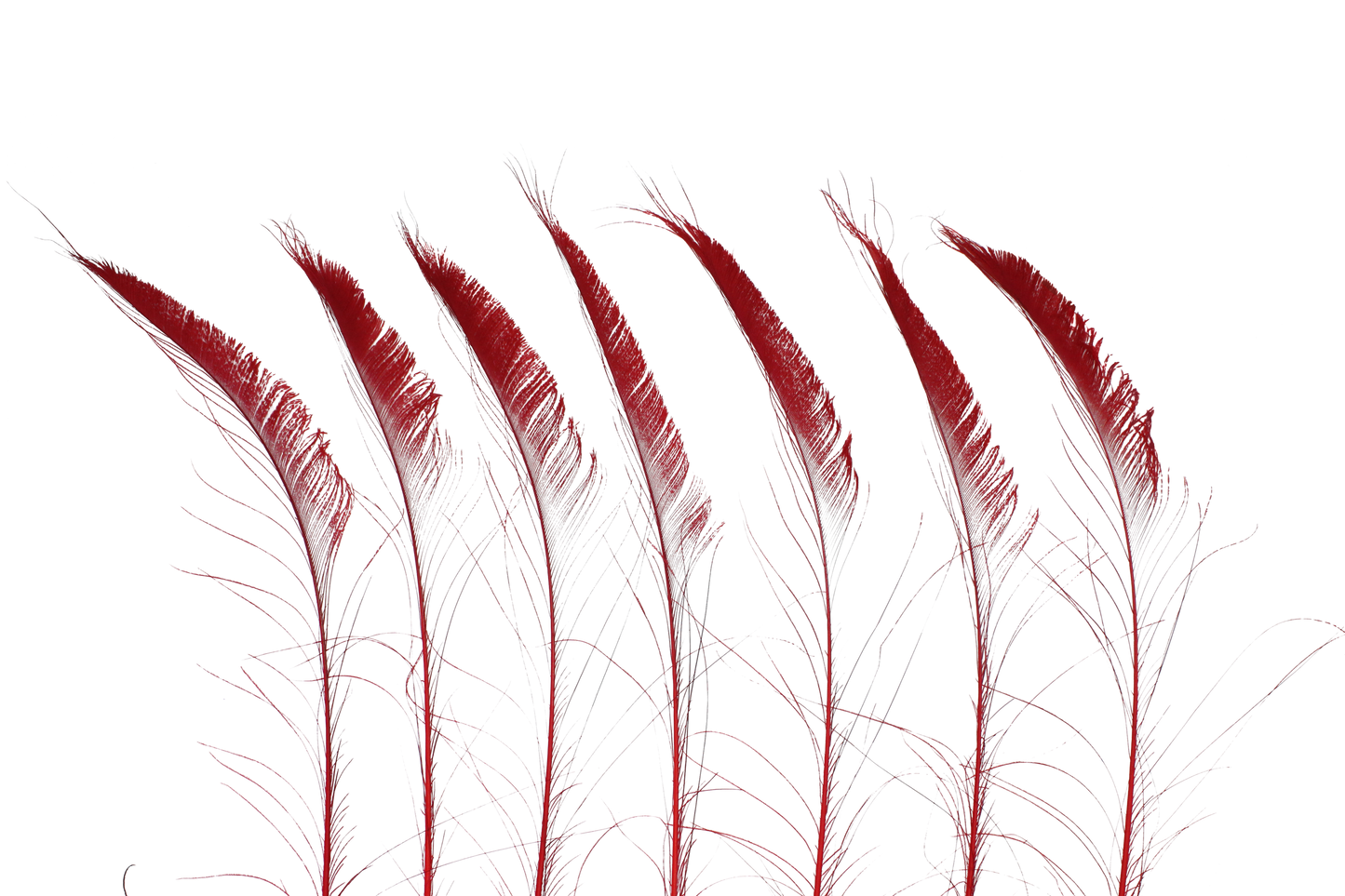These 25-inch and up peacock swords in Red (H72) are bleached and dyed to showcase a bold, vibrant red stem. The natural iridescence of the eye shines through the dye, creating a stunning contrast of deep red tones and shimmering peacock colors. Perfect for weddings, festive décor, floral arrangements, or dramatic craft projects, these peacock swords add a passionate, dynamic touch to any design.