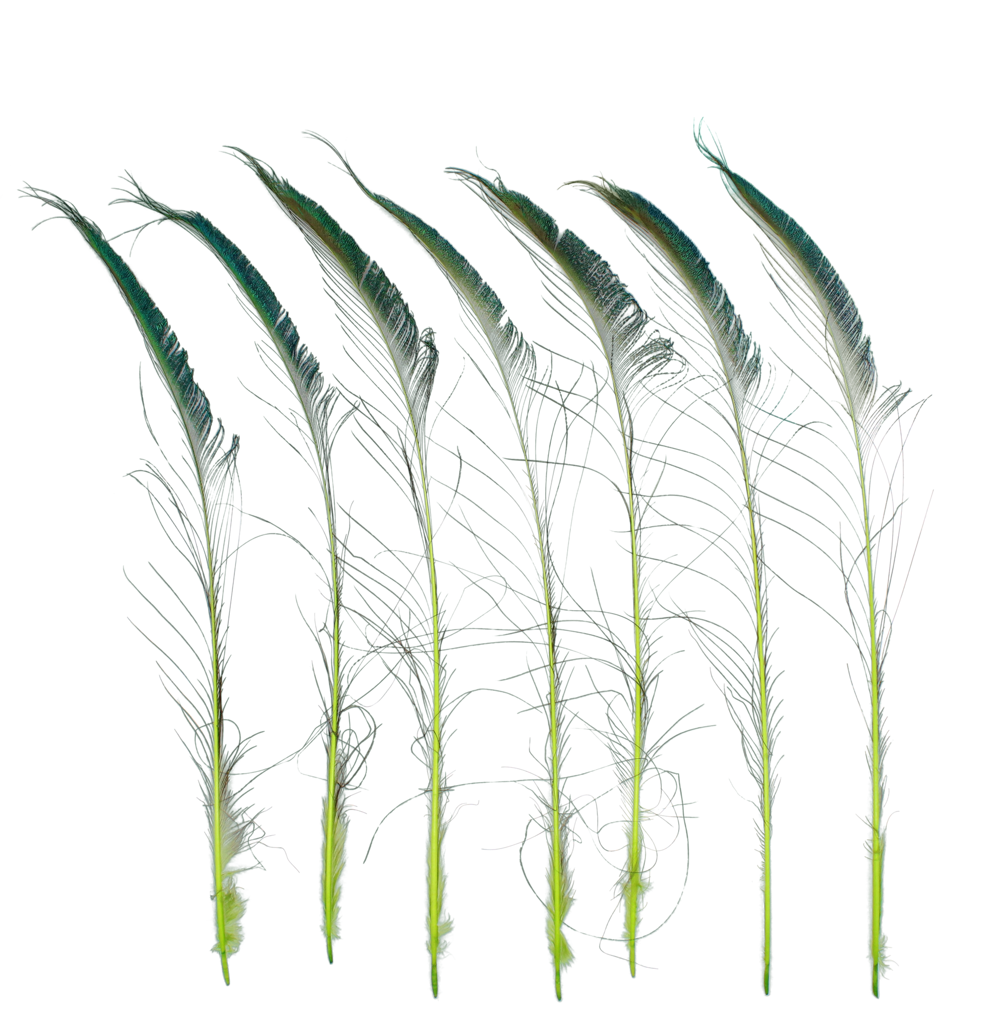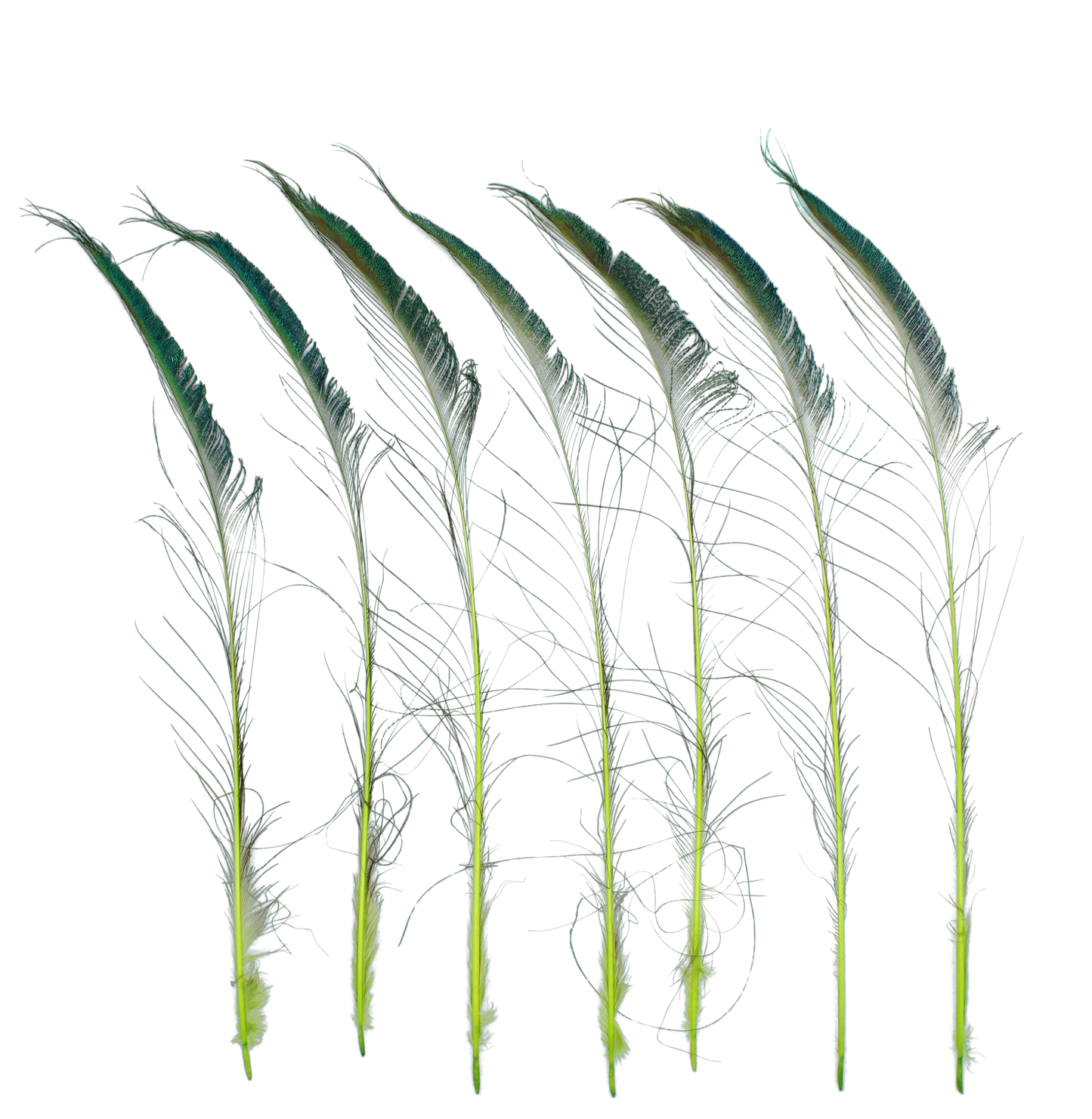 These 25-inch and up peacock swords in Apple (H7) are overdyed, with the stems featuring a fresh, vibrant apple green color while the natural iridescent eye remains visible through the dye. This creates a stunning contrast of bright green tones and the organic shimmer of the peacock feathers. Perfect for weddings, spring-themed décor, floral arrangements, or lively craft projects, these peacock swords add a refreshing, energetic touch to any design.