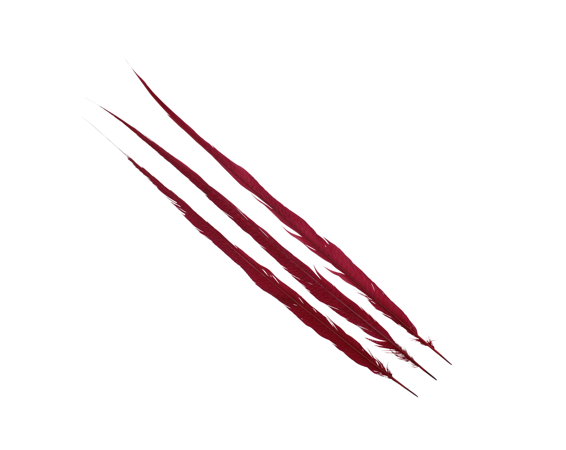 Rich and vibrant, these Pheasant Goldentail feathers in Cranberry (H57) create stunning focal points for holiday crafts, event décor, and bold designs.