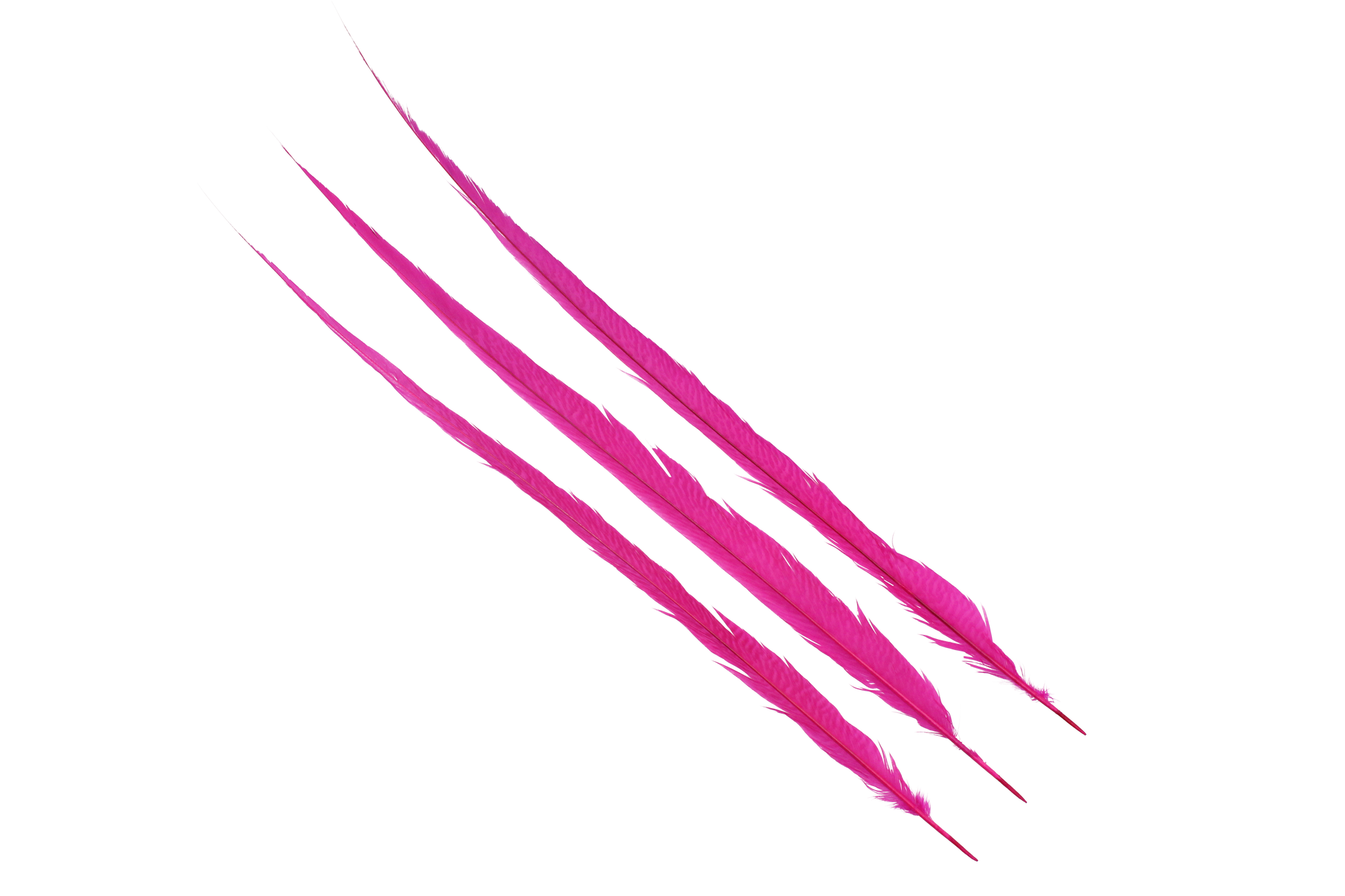 Vivid and eye-catching, these Pheasant Goldentail feathers in Hot Pink (H69) make a bold statement for event décor, fashion accents, and artistic creations.