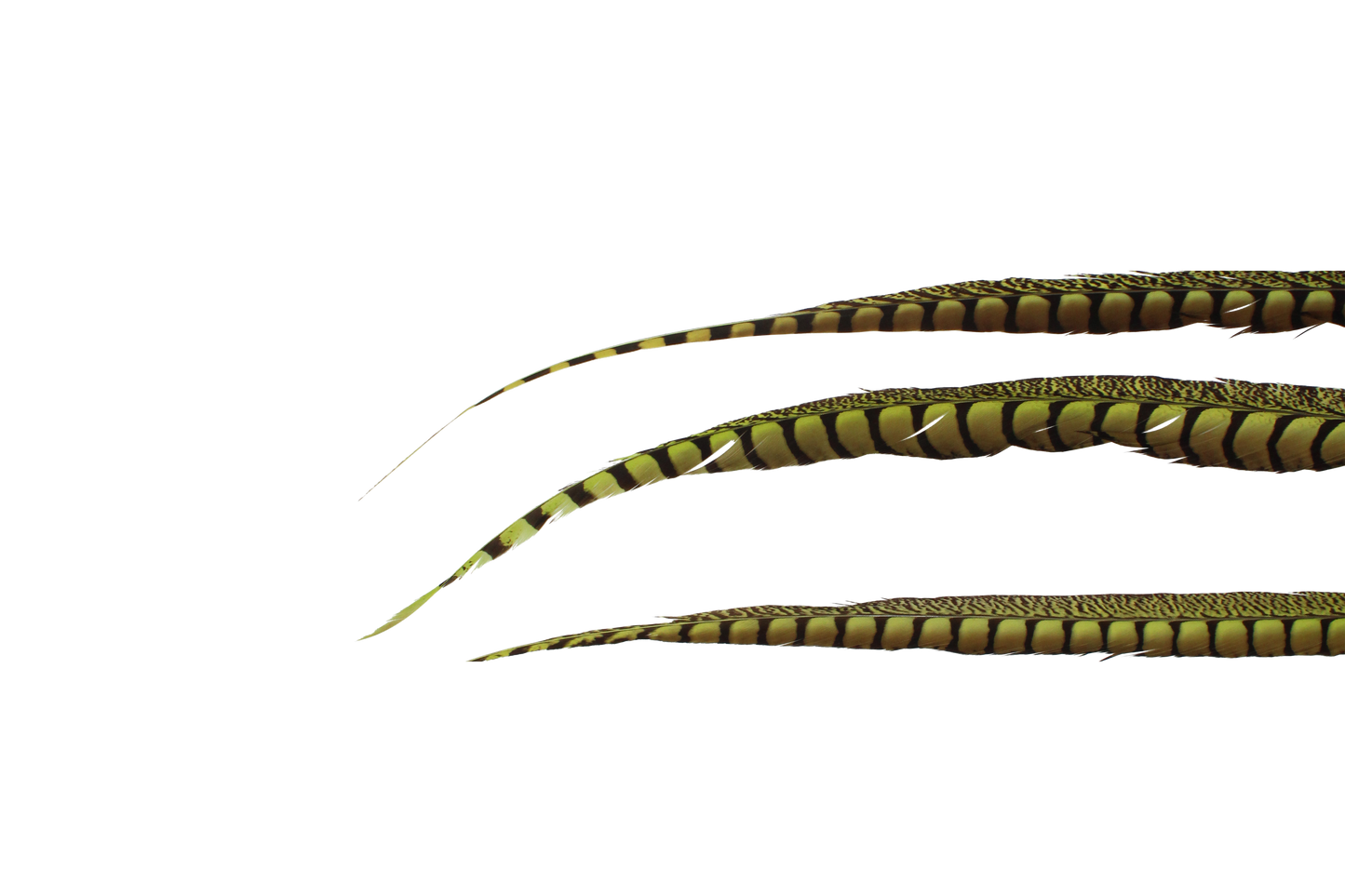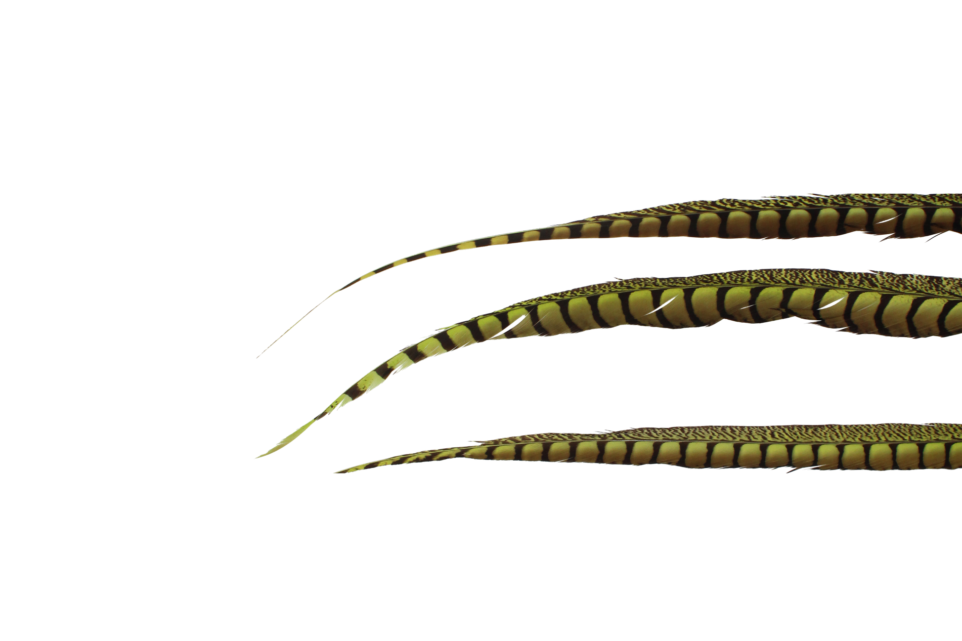 Pheasant Lady Amherst H7 Apple Feathers 25"+ showcase a vibrant apple green hue with natural patterns, perfect for bold and unique designs. Ideal for dramatic costumes, striking décor, or creative crafts, these feathers add a dynamic and luxurious touch to your creations.