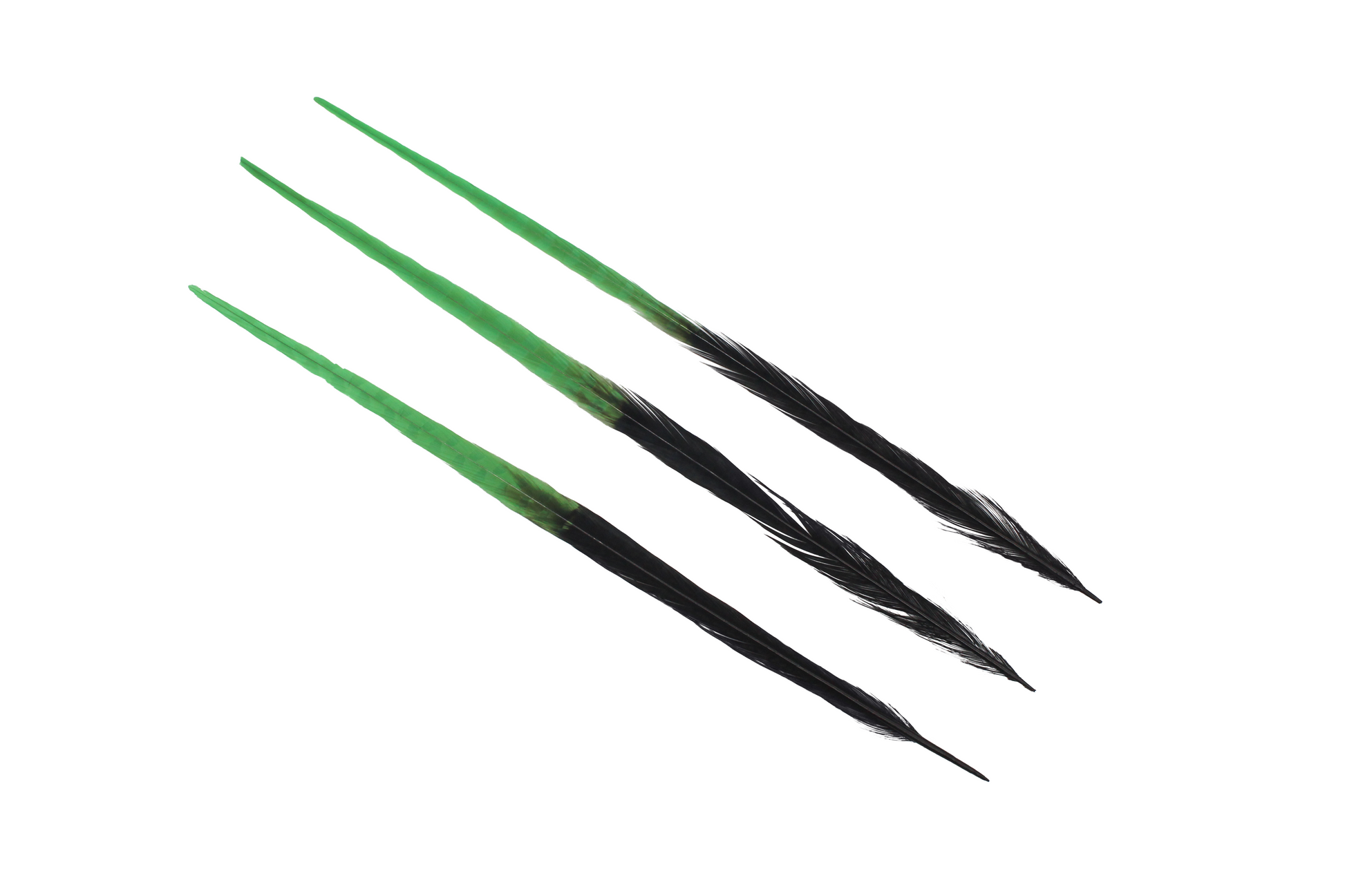 Rich and warm, these Pheasant Ringneck 2 Tone H8 Emerald & H80 Black feathers bring depth and elegance to dramatic designs, luxurious crafts, and stunning décor.