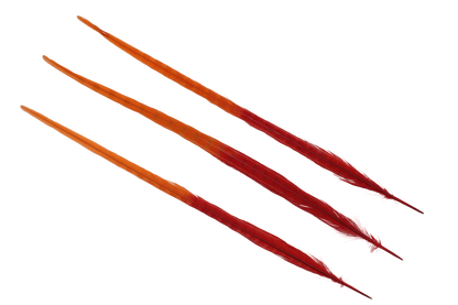Rich tangerine and bold red create a fiery combination in these Pheasant Ringneck 2 Tone H61 Orange & H72 Red feathers, ideal for energetic designs and festive projects.