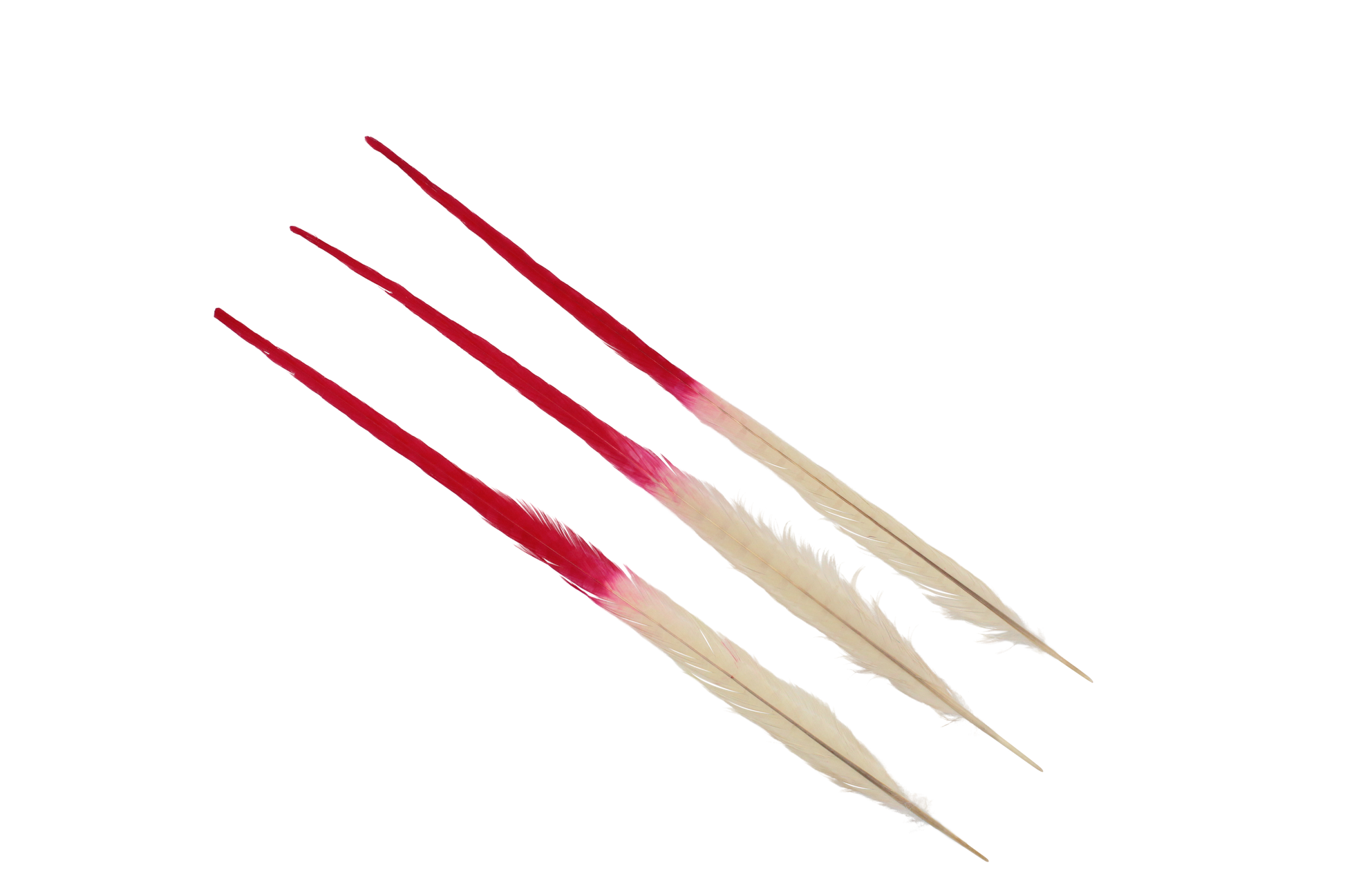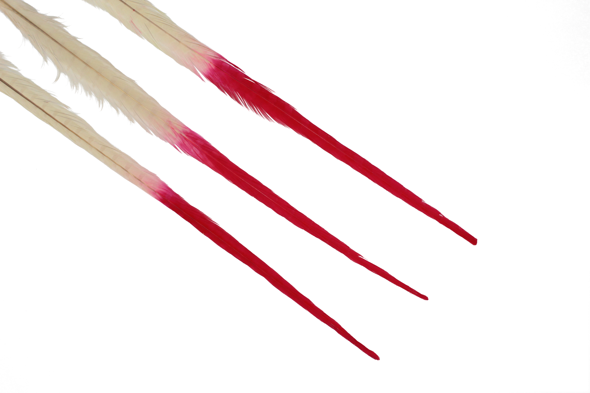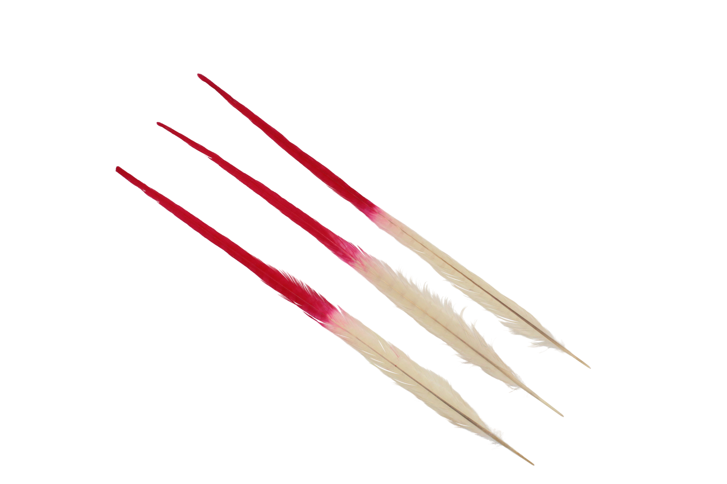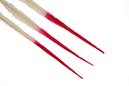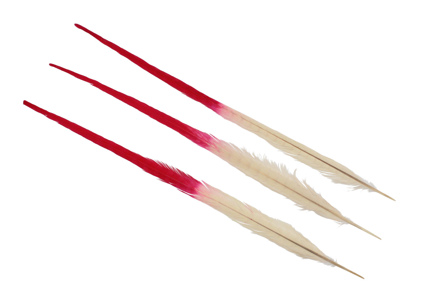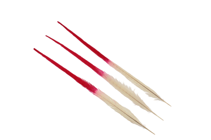 Elegant red and soft cream combine in these Pheasant Ringneck 2 Tone H72 Red & H33 Ivory feathers, ideal for sophisticated décor and luxurious crafts.