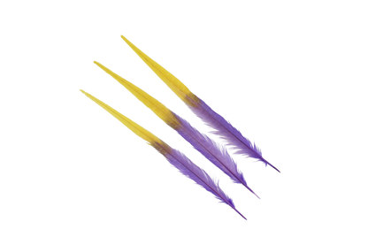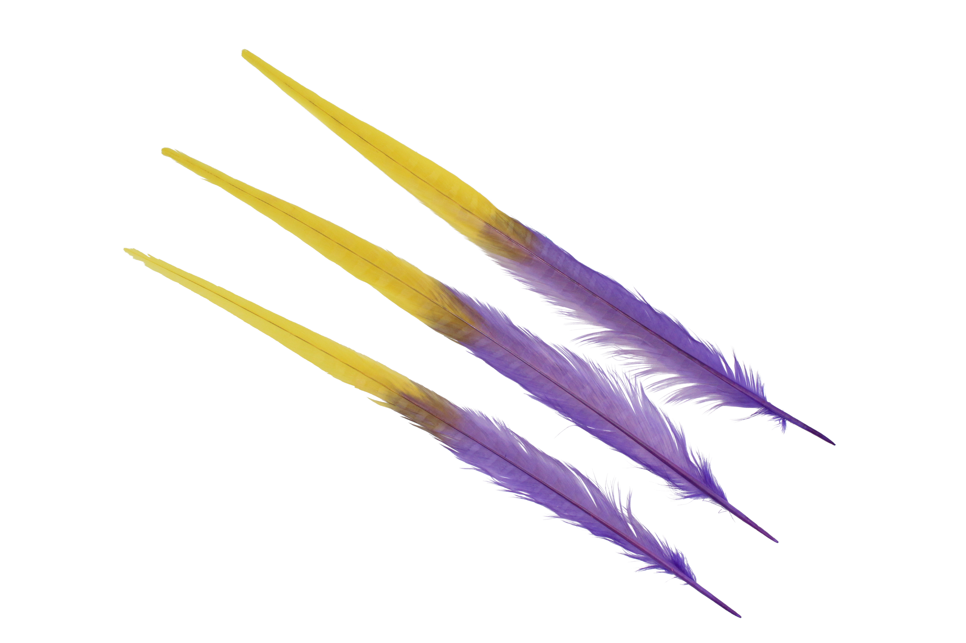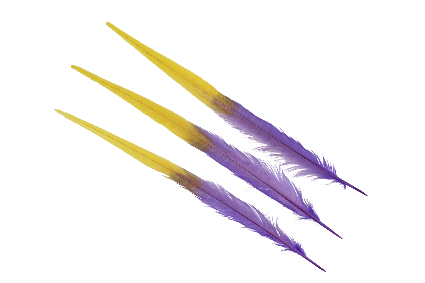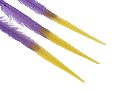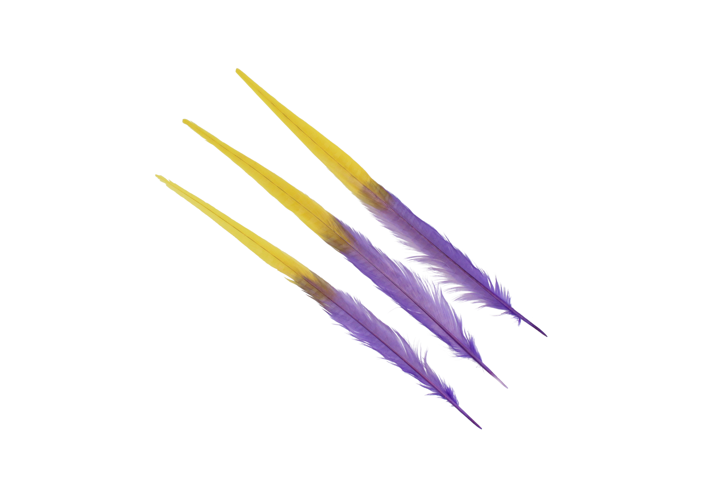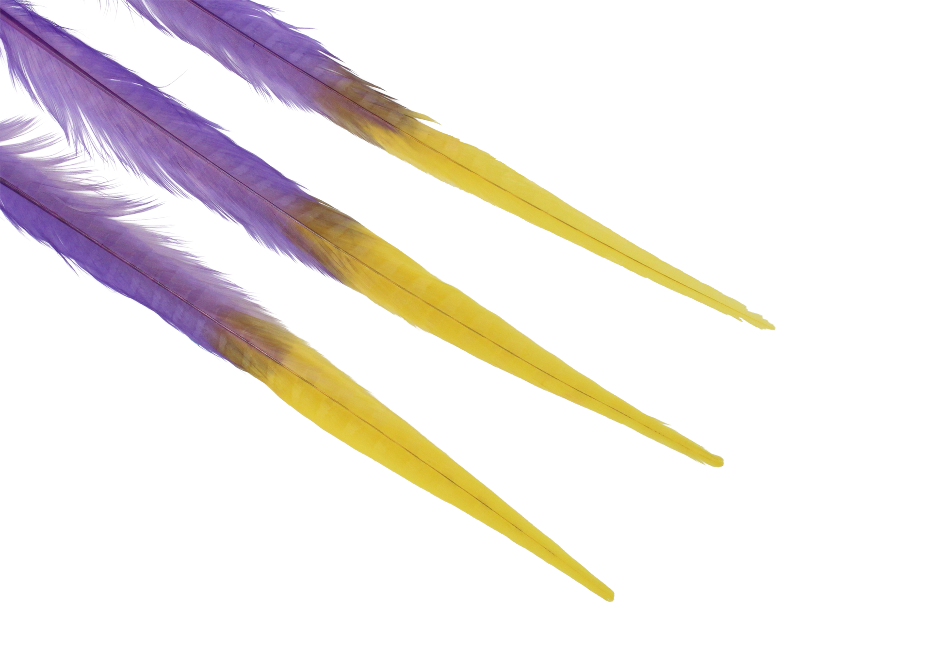 Soft and vibrant, these Pheasant Ringneck 2 Tone H89 Lavender & H36 Yellow feathers combine delicate hues with bold contrast, perfect for elegant décor, spring-inspired designs, and creative crafts.