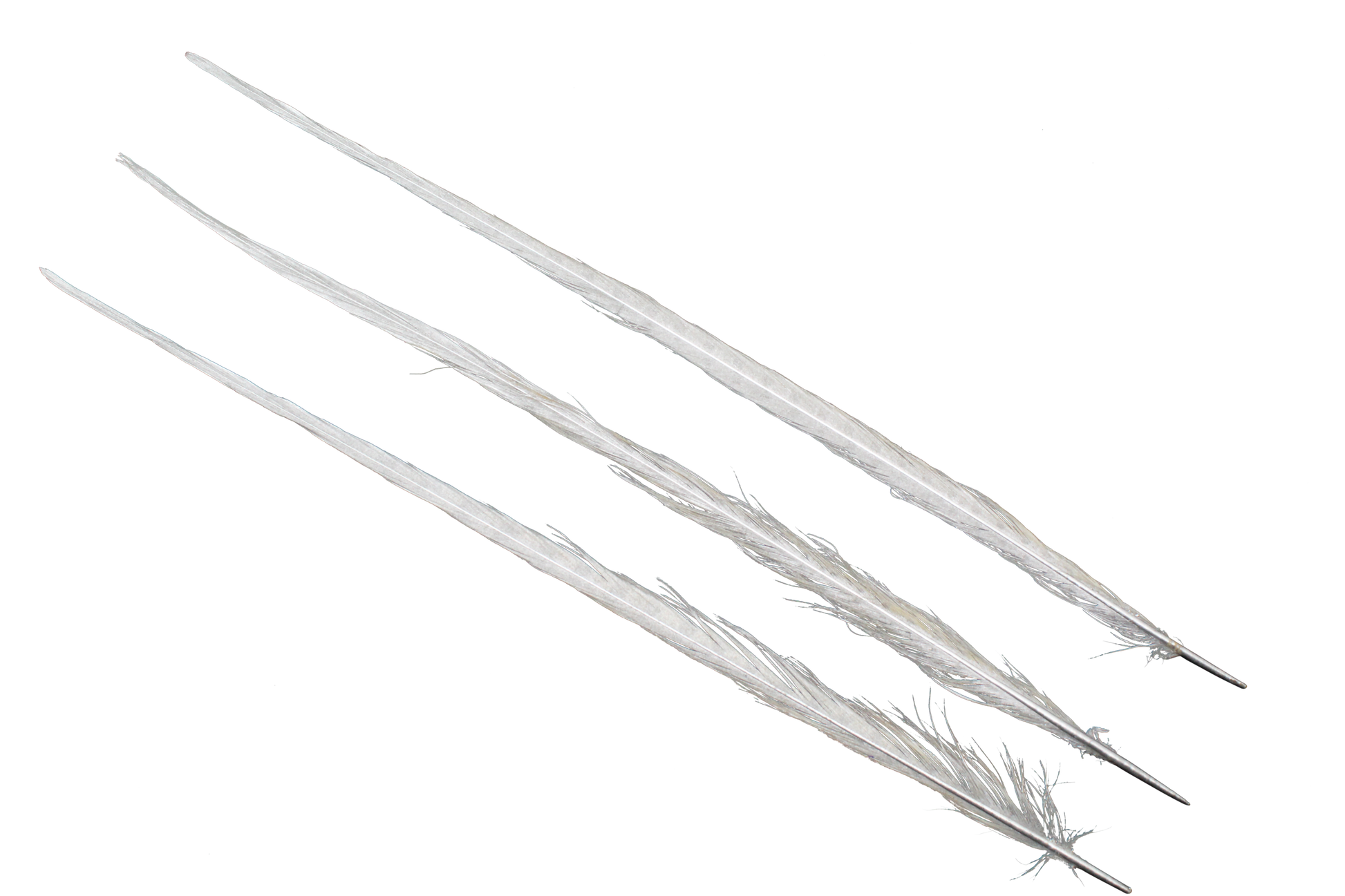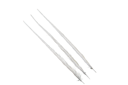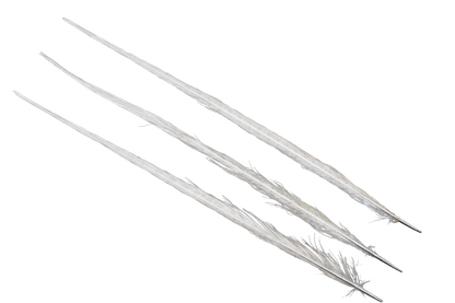 These Pheasant Ringneck Metallic Silver 20-22" feathers shimmer with a striking metallic finish, making them perfect for luxurious event décor, glamorous crafts, and bold statement pieces.