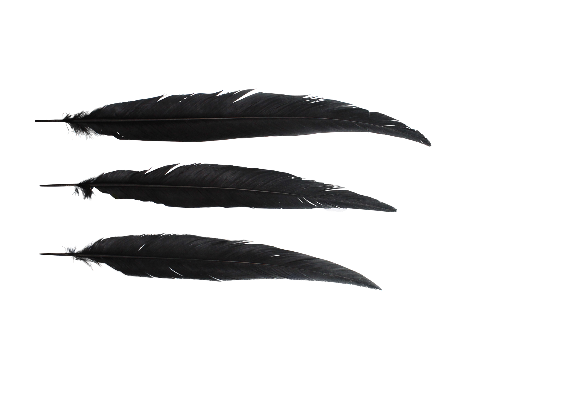 Pheasant Silvertail feathers in deep black, 18-24 inches long (H80). A versatile choice for adding elegance and sophistication to crafts, fashion, and décor.