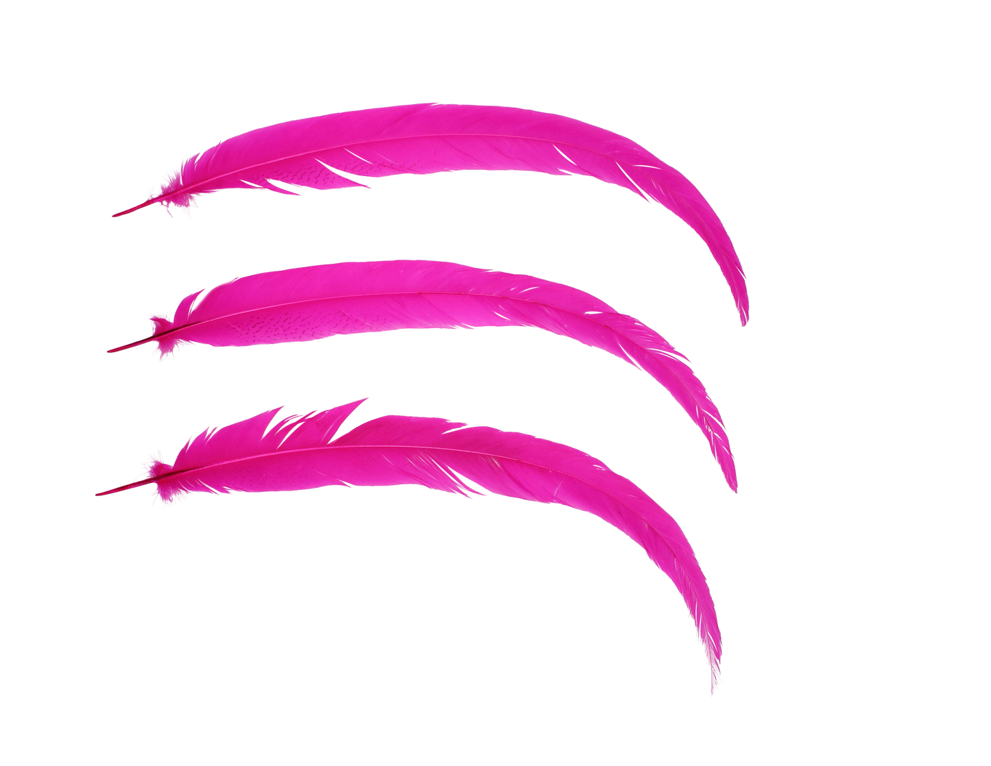 Pheasant Silvertail feathers in bold Hot Pink, 28"+ (H69). Perfect for making a vibrant statement in costumes, crafts, and décor, adding an energetic pop of color to any design.