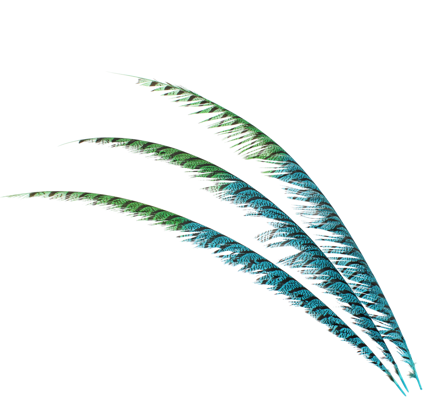 Cool and lively, these Pheasant Zebra 2 Tone feathers in H12 Aqua Blue and H101 Lime offer a refreshing palette, perfect for beach-inspired designs, fashion accents, and bold crafts.