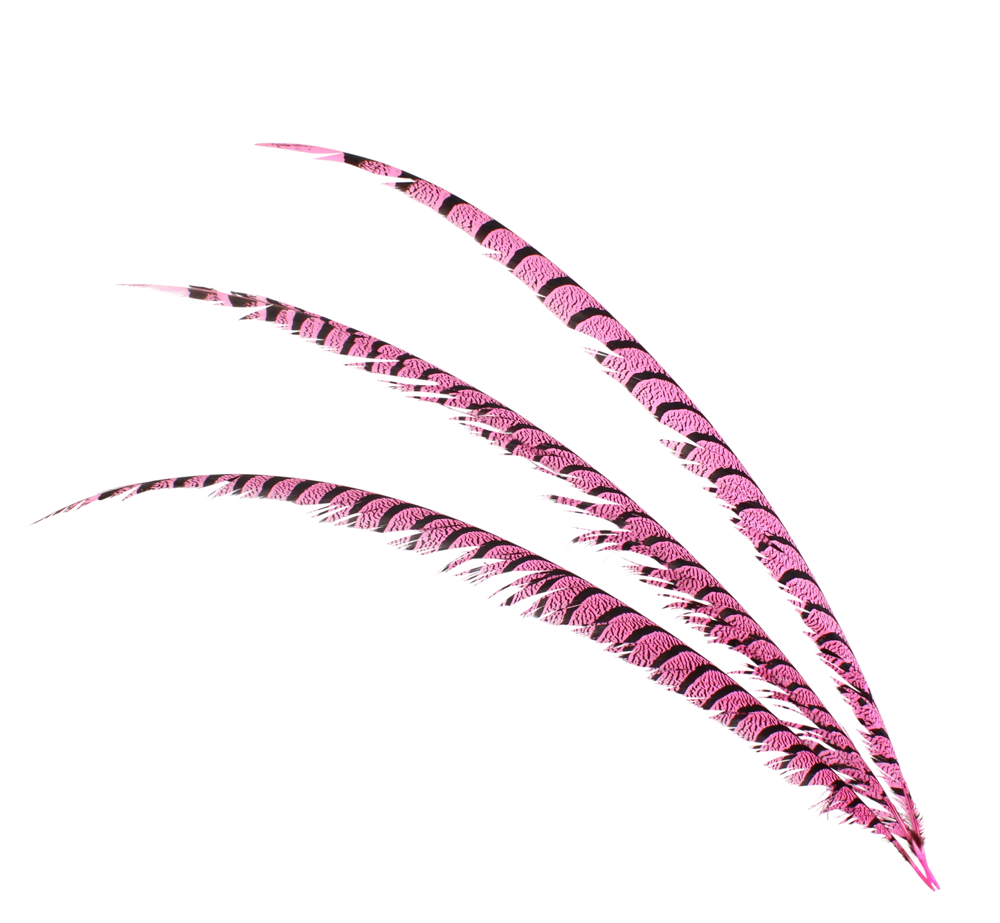 Playful and dynamic, these Pheasant Zebra Overdyed H67 Hot Pink feathers combine vibrant pink tones with dramatic patterns, perfect for event styling and bold creative works.
