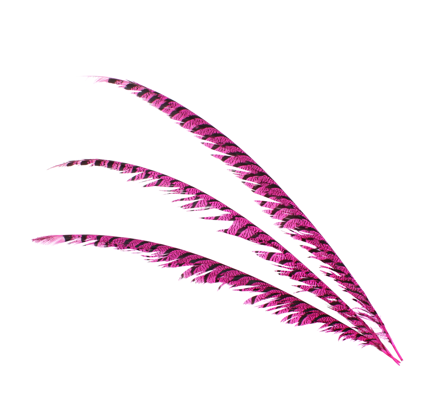Bold and striking, these Pheasant Zebra Overdyed H69 Hot Pink feathers command attention with their vivid hue and natural stripe details, ideal for fashion and statement décor.