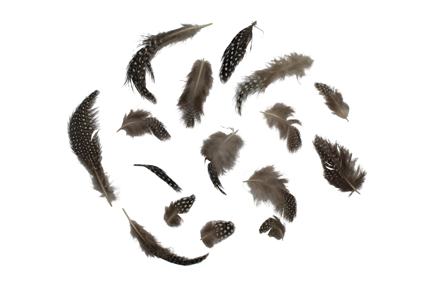 Plumage Guinea Natural features striking feathers with unique speckled patterns and natural hues. Perfect for adding texture and sophistication to crafts, decor, and designs. Ideal for creating distinctive, eye-catching pieces with a natural touch.