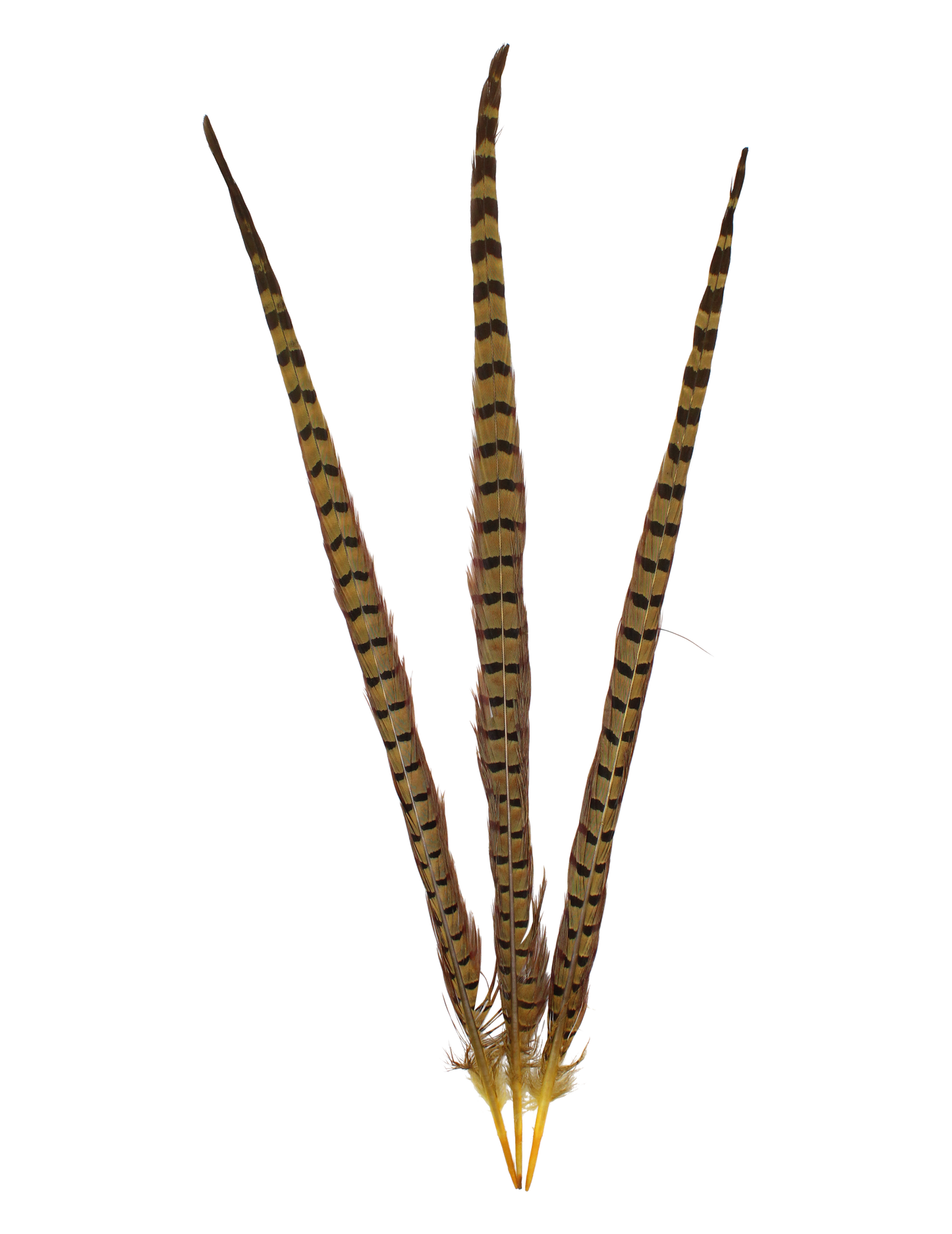 Ringneck Overdyed 20"+ H36 Yellow Feathers feature a bright, bold yellow hue, expertly overdyed to highlight their natural elegance. Perfect for creating eye-catching costumes, vibrant décor, or unique crafts, these feathers add a lively and energetic touch to any project.