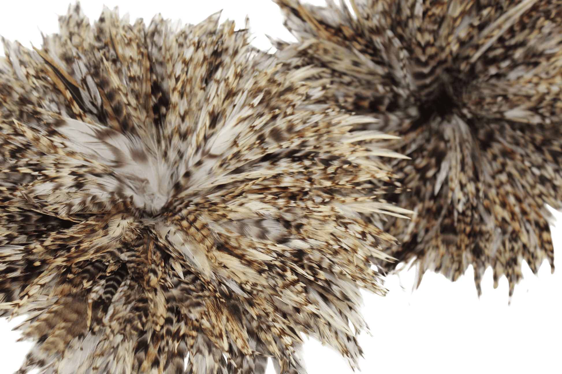 Saddle feathers measuring 6–7 inches, naturally strung together for easy use.