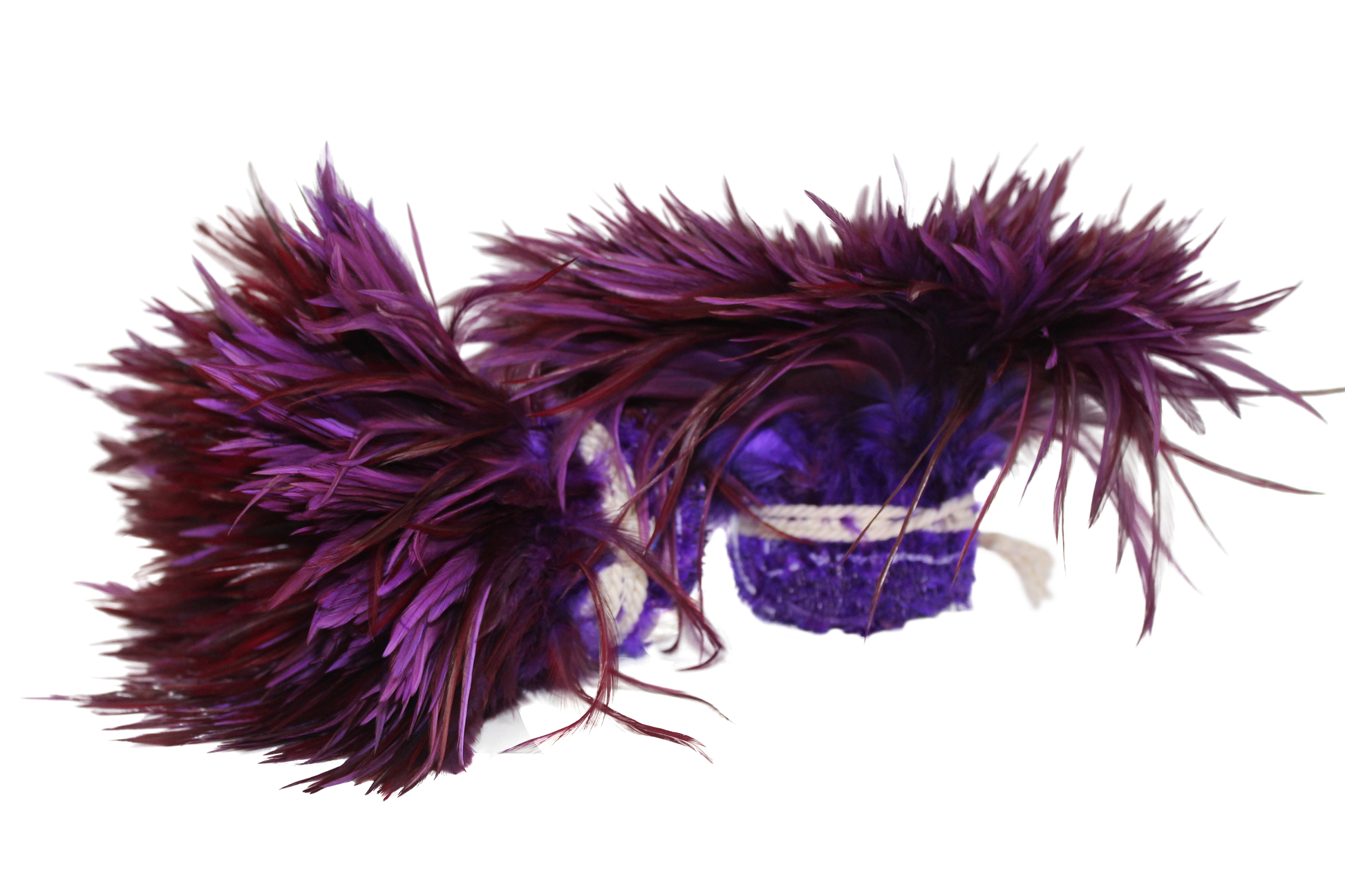 Rich and deep, these H75 Purple Saddles 6-7" Overdyed Strung feathers bring elegance and bold flair to fashion, stagewear, and carnival costumes.