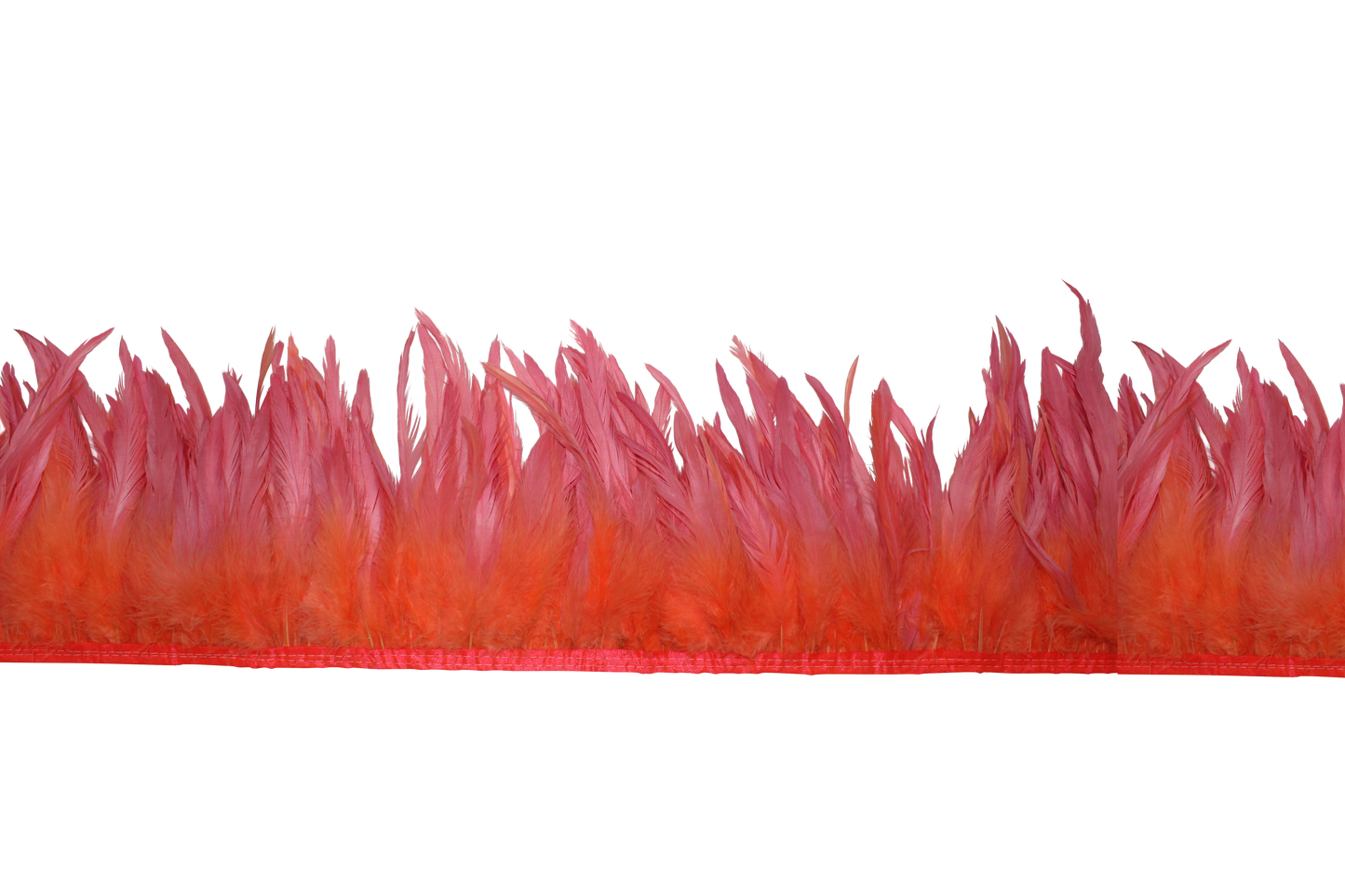 Schlappen Yards Bleach Dyed H111 in Coral feature soft, flowing feathers in a warm, vibrant coral hue. Perfect for adding texture and a pop of color to crafts, costumes, and decor. Ideal for creating bright, elegant designs with a tropical flair