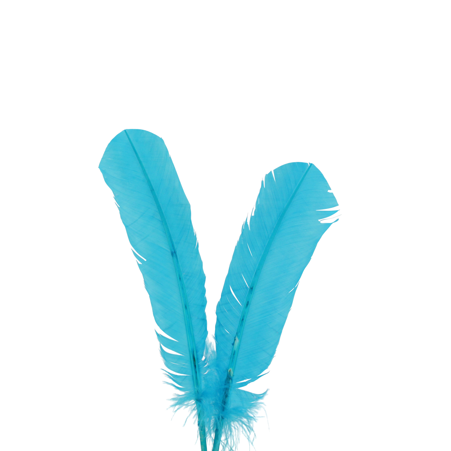 Refreshing and vibrant, these Turkey Quills H12 Aqua Blue feathers bring a lively oceanic tone to décor, costumes, and unique artistic designs.