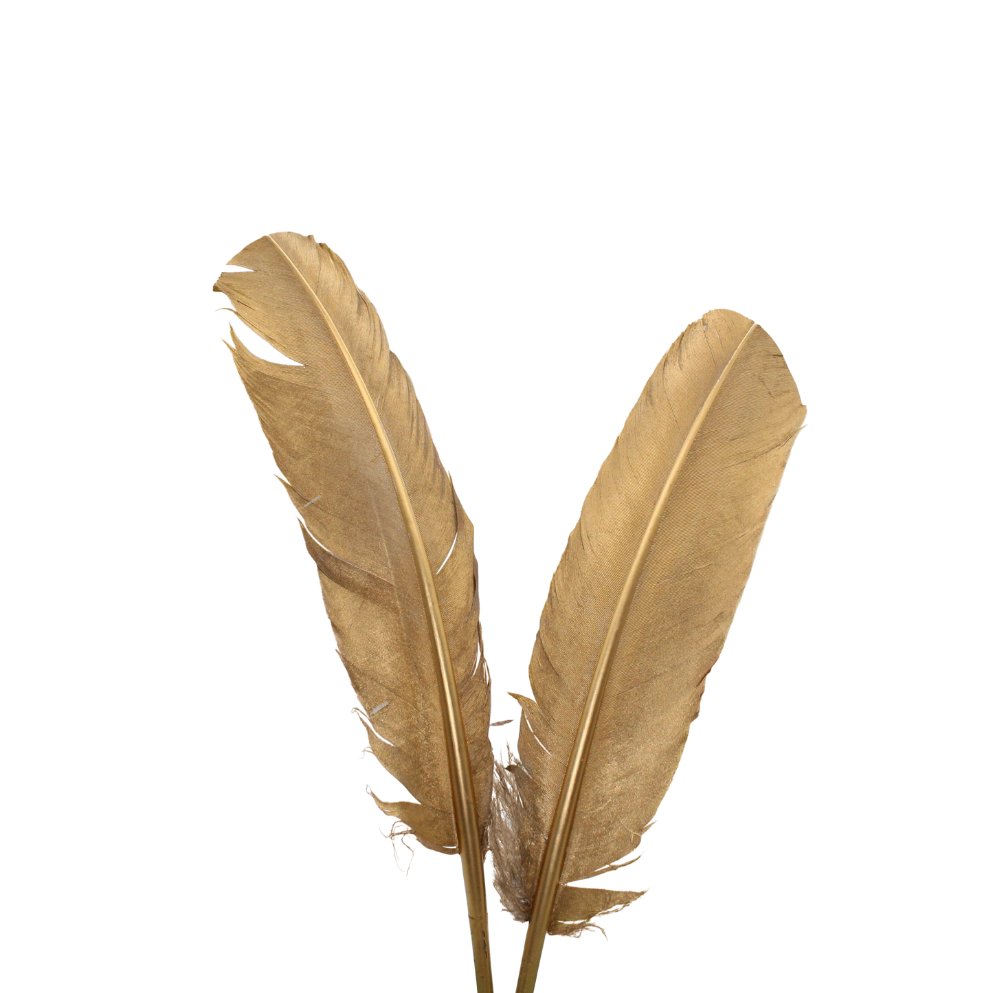 Elegant and bold, these Turkey Quills Pieces Metallic Gold feathers offer a rich, golden hue that adds luxury and refinement to décor, costumes, and artistic creations.
