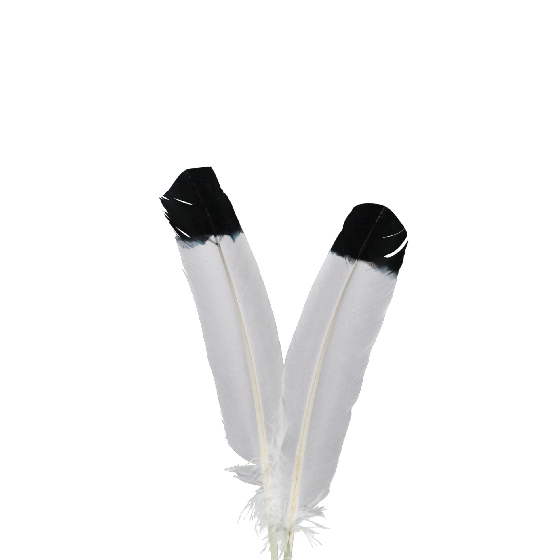 Turkey Quills Regular Cut in White with Black tips offer a striking contrast of classic white and bold black. Ideal for fishing lures, costumes, and crafts, they add elegance and precision to any design with a refined, sophisticated finish.